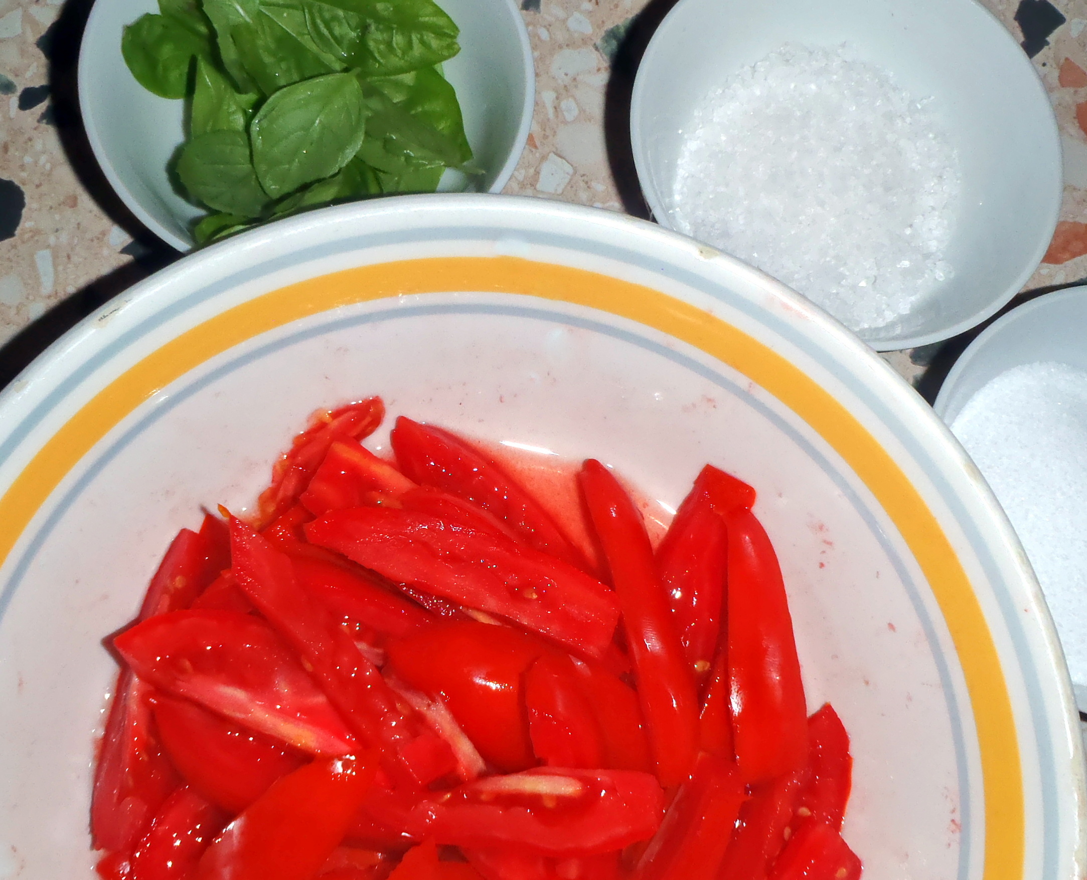 Antonietta 20/08/2012Qui potete vedere come si possono conservare i pomodori a fette per usarli durante l’Inverno. E’ vero che i pomodori sono disponibili tutto l’anno, è vero anche però che, quelli in vendita durante i mesi freddi, non hanno lo stesso sapore e profumo dei pomodori maturati al sole caldo dell’Estate. Questa preparazione, vi aiuta a rendere più gustosi e saporiti tanti cibi come la pizza, il sugo per la pasta asciutta, la pizzaiola di carne o di pesce. Anche le bruschette avranno profumo d’Estate con questi filetti di pomodori conditi con origano, basilico e olio d’oliva. Buon lavoro.