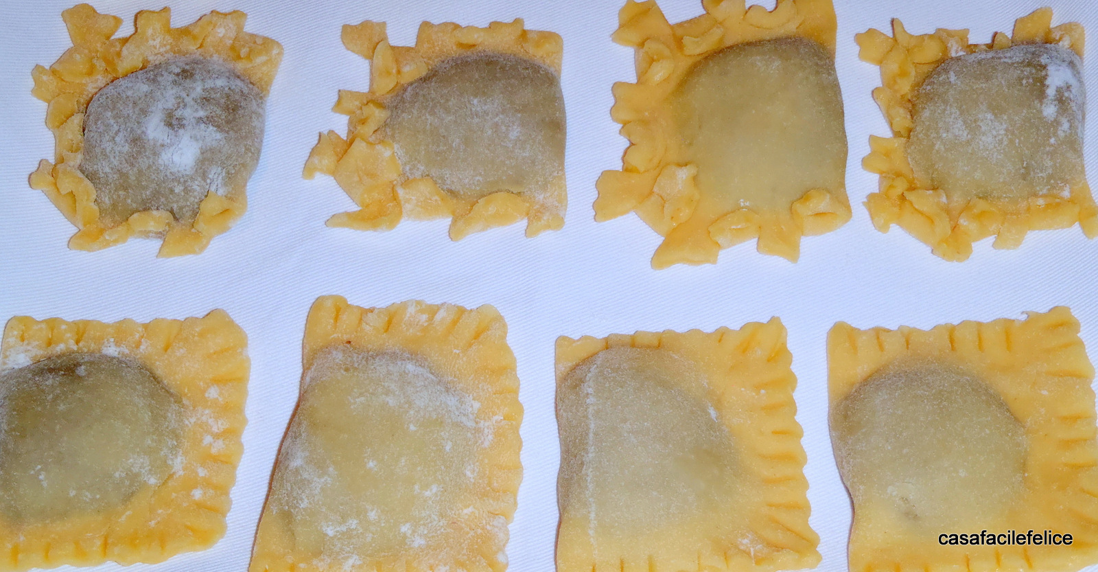 ripiegate la sfoglia sul ripieno e con le dita premete per unire bene i lembi cercando di non far entrare aria. Tagliate con un coppa-pasta o con un coltello tagliasfoglia