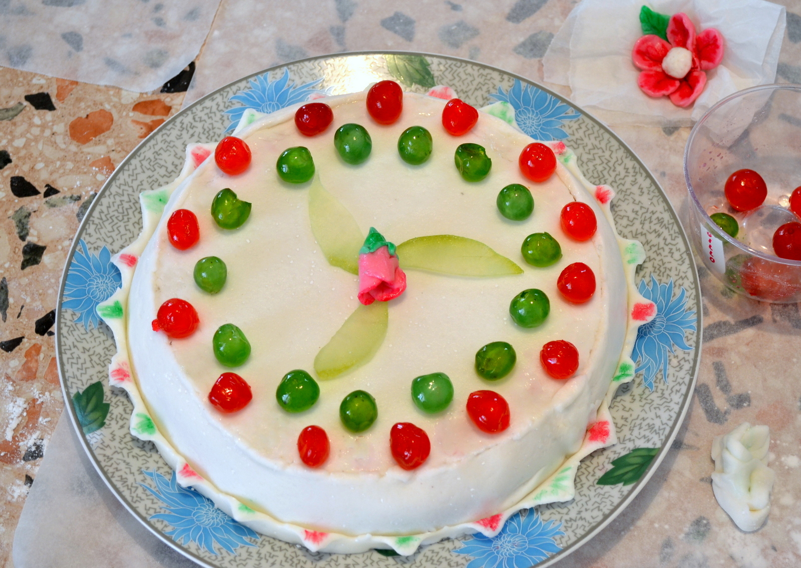 Antonietta 21/03/2013Questa che vi presento, è la ricetta della pasta di zucchero che faceva mia madre, senza glucosio, con qualche piccola variante; lei usava gelatina dolce di maiale che io ho sostituito con fogli di colla di pesce, lei usava la sugna che io ho sostituito con il burro: sostanzialmente non è cambiata molto. Questa preparazione si utilizza per la copertura delle torte e per fare fiori o altre piccoli oggetti, da decorare con coloranti alimentari.