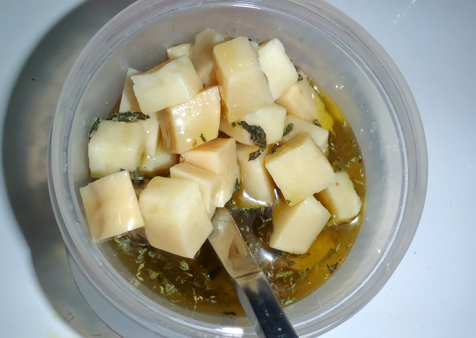 Antonietta 26/04/2013Questa preparazione è ideale (secondo alcuni indispensabile) per addolcire il sapore e il profumo, a volte molto intenso, dei formaggi di capra. La macerazione in olio e spezie, permette al cacio di conservare tutte le sue caratteristiche, esaltandone la dolcezza. Nelle foto è descritta la preparazione con cacio di capra tipico di Tronchon, un paesino della provincia di Teruel in Aragona, Spagna. Bocconcini perfetti per stuzzichini, per chiudere un pranzo troppo leggero o scialbo o per una degustazione veloce ma appagante.
