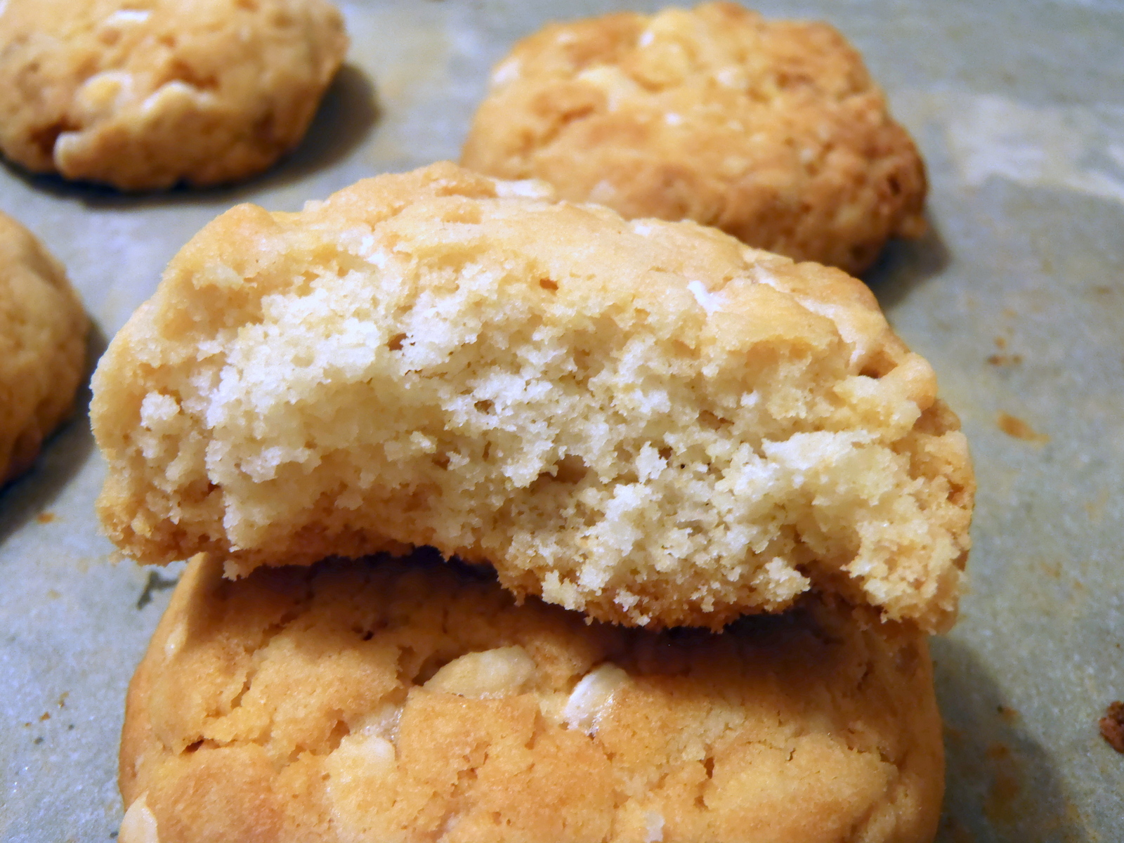 Infornate a 180° – 190° per 10 minuti sul ripiano basso e 10 minuti sul ripiano alto. Sfornate subito, diventeranno croccanti raffreddandosi. Se li preferite morbidi dentro, cuoceteli in formine e toglieteli dal forno qualche minuto prima del tempo previsto.