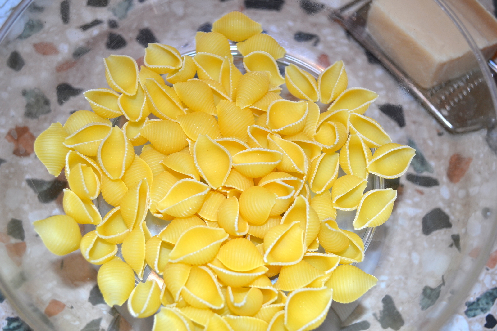 - 90 grammi pasta di semola conchiglie,