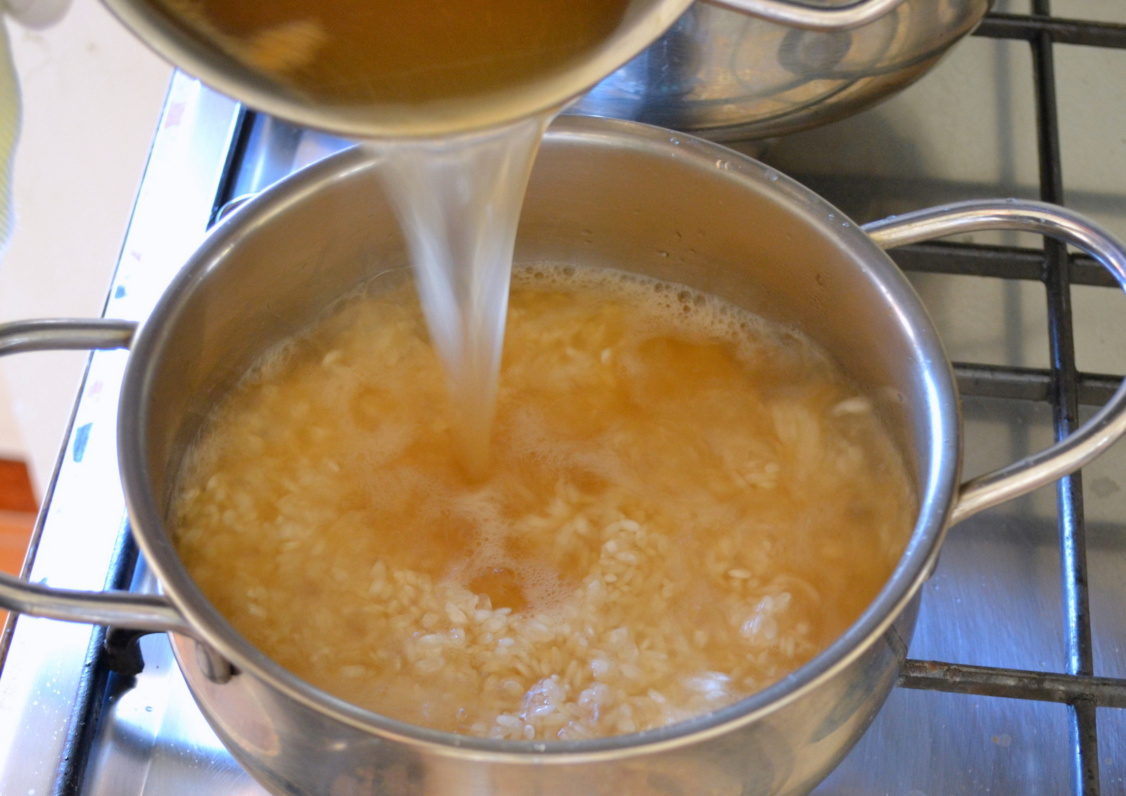 Mettete il riso in una pentola  che abbia il  coperchio, versate  il brodo bollente e portate subito ad ebollizione coprendo  immediatamente;gamberoni rossi,ricette con riso,www.casafacilefelice.org,