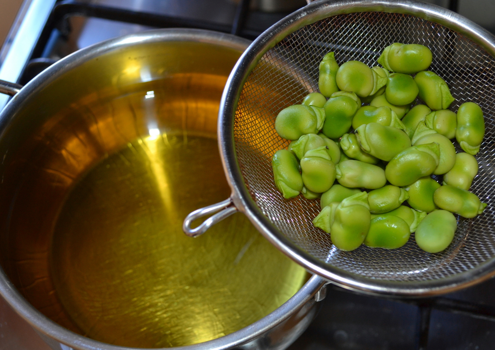 fatele sgocciolare su carta assorbente.  fave,www.casafacilefelice.org,riso con fave e gamberoni rossi