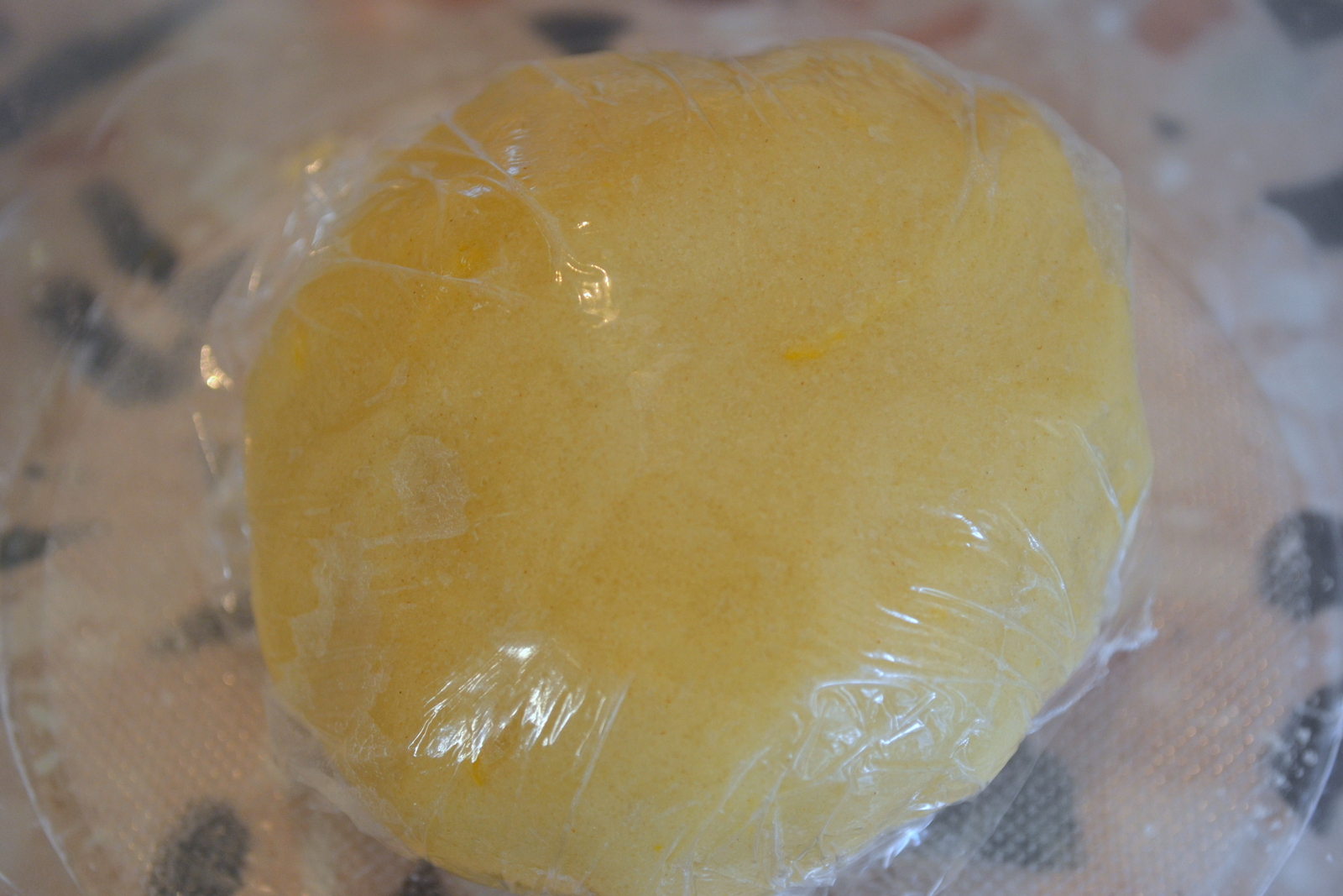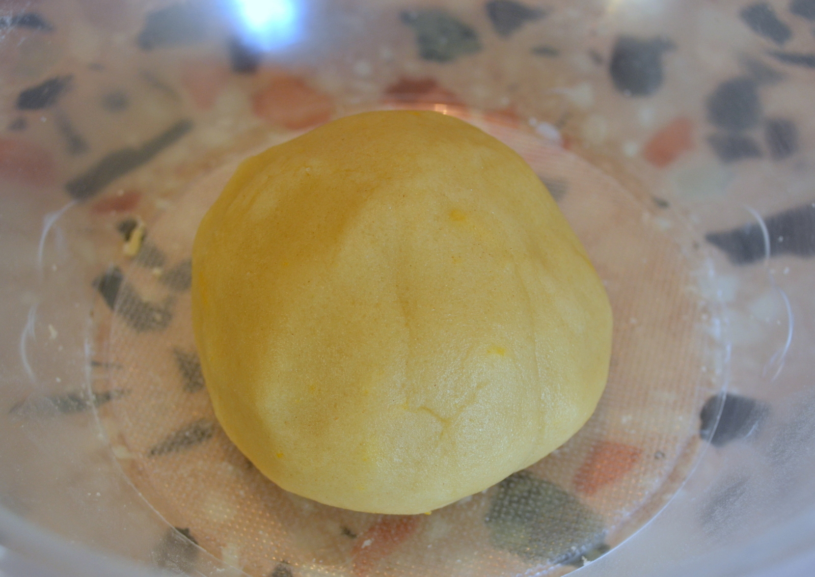 At last, give it the form of a ball, cover with plastic wrap and let stand for 30 minutes at least.