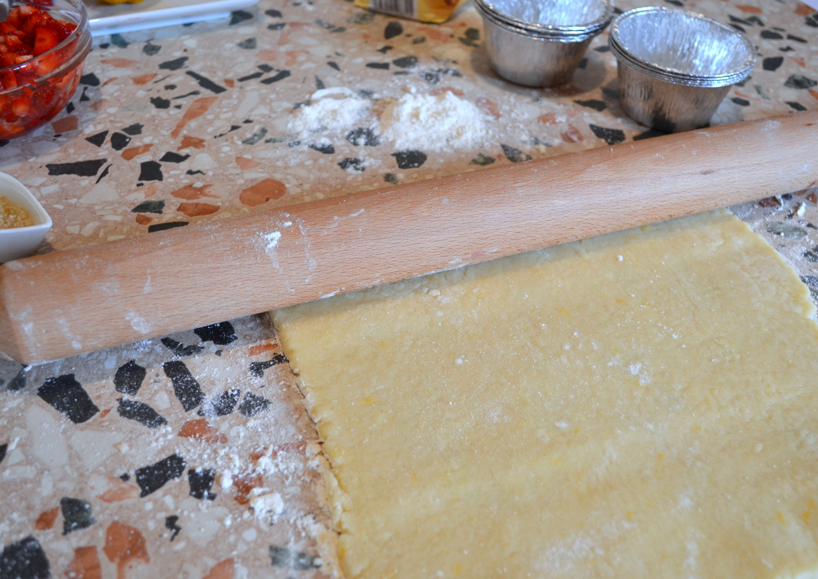 When the time is over, roll out the pastry in 1-1,5 cm thick and line the molds of shape you have chosen;