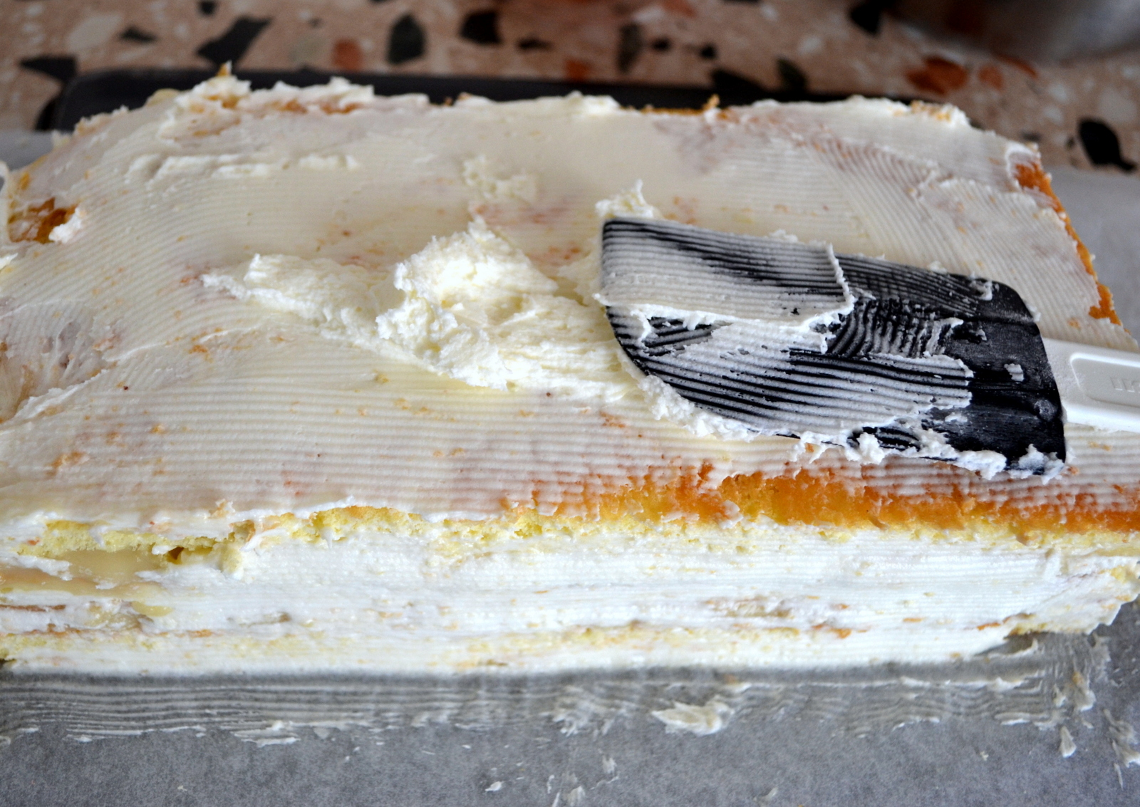 Alla fine, coprite la torta con la crema di burro e mettetela nel frigo.www.casafacilefelice.org,torta biscuit,pan di spagna,torta pacchetto