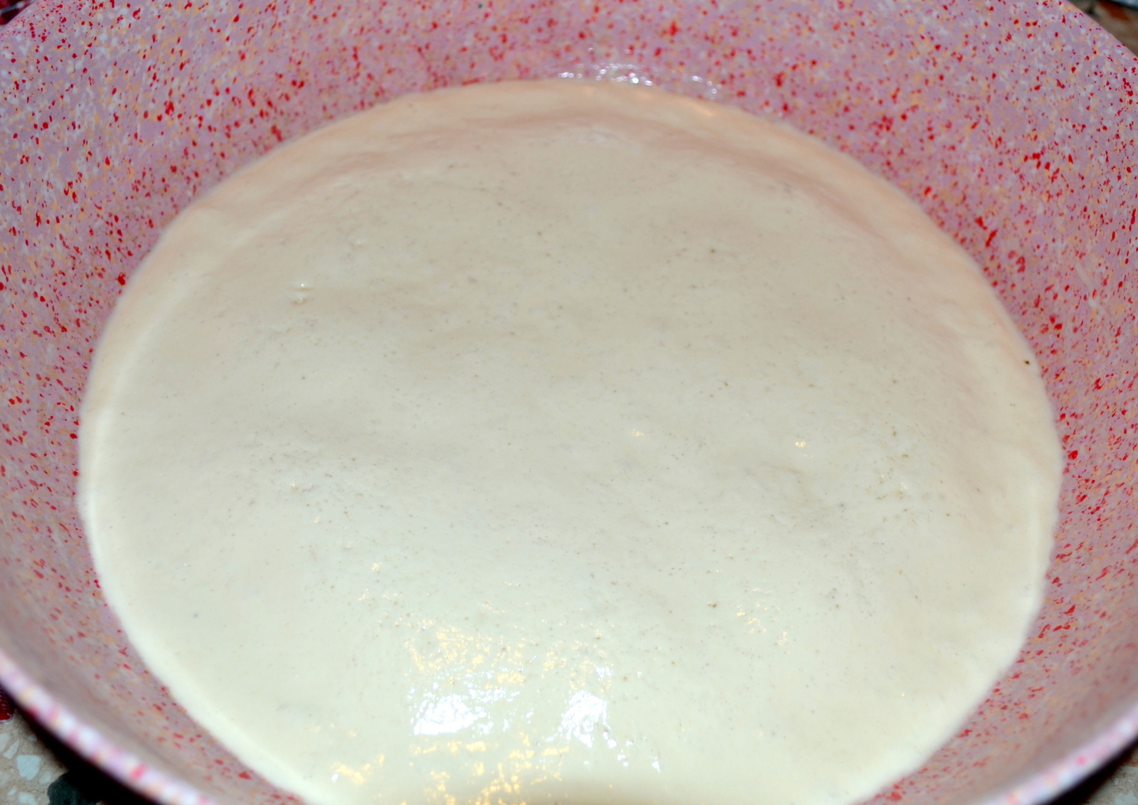 Quando sarà trascorso il tempo, la poolish sarà raddoppiata di volume e si presenterà come mostrato nelle foto, schiumosa e corposa;