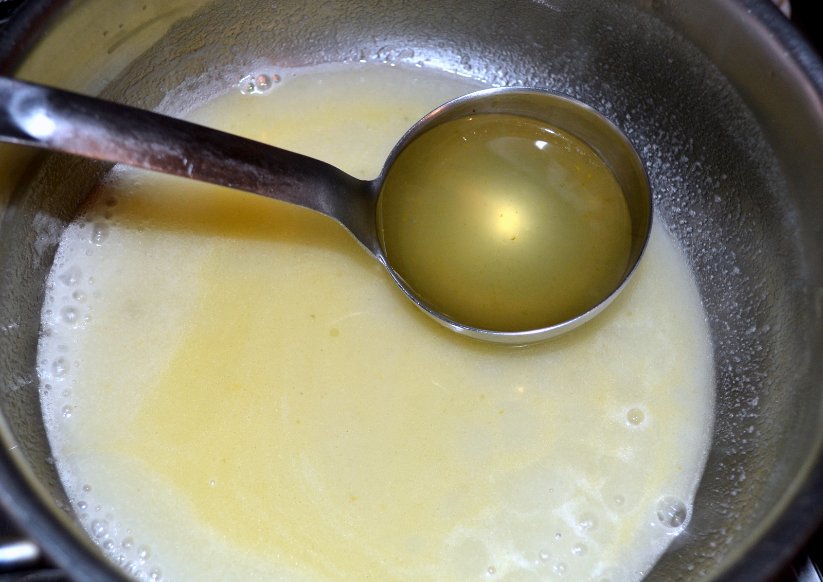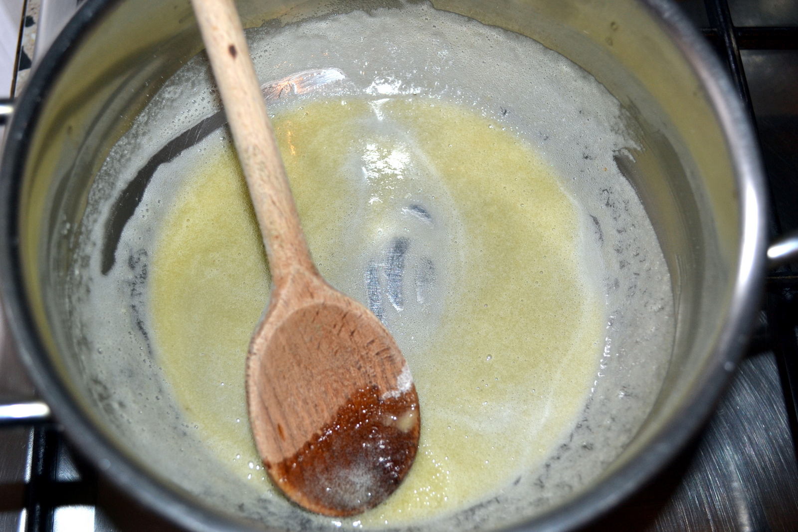 Aggiungete un mestolino di brodo e mescolate con attenzione per sciogliere bene la farina;