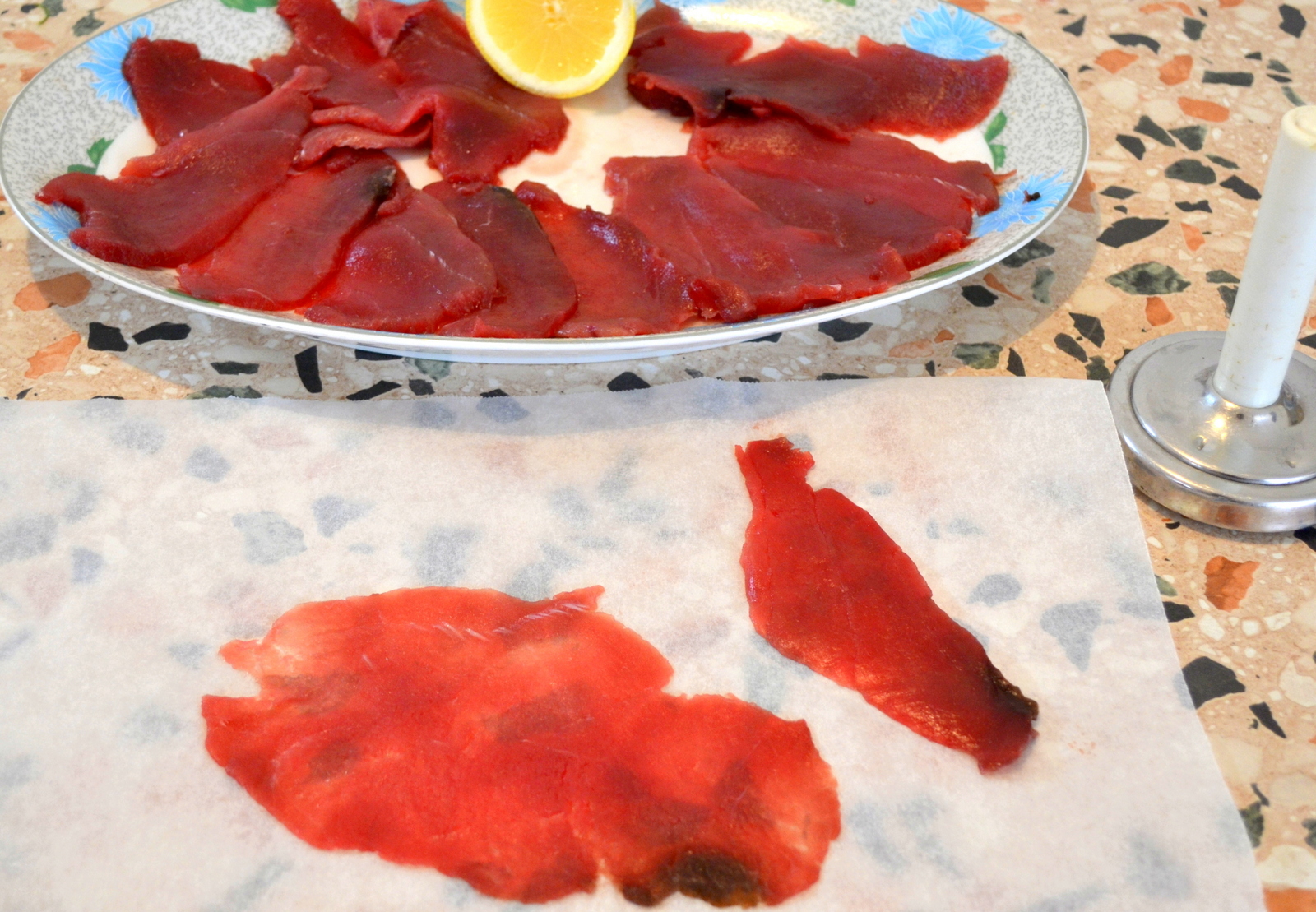 Mettete il contenitore chiuso nel frigo, 8 ore prima di consumarlo, oppure tenetelo a temperatura ambiente per 4/5 ore. Tagliate il trancio in fette sottili.