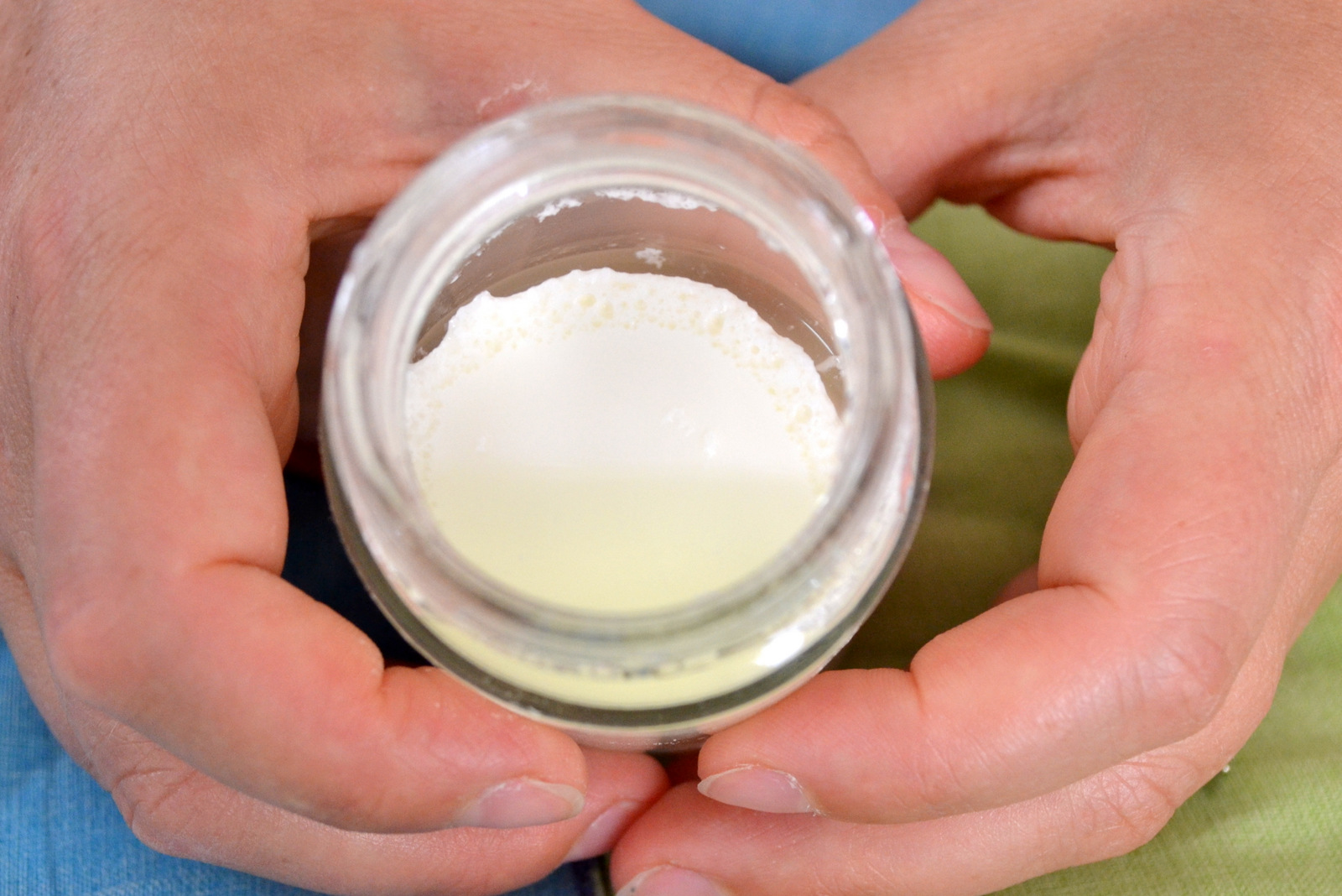 Alcune volte lo yogurt si presenta con un sottilissimo strato liquido, che non pregiudica il risultato , spesso viene assorbito in 1 o 2 giorni.  Conservate un barattolo di yogurt per la successiva preparazione che andrà fatta con le stesse modalità.
