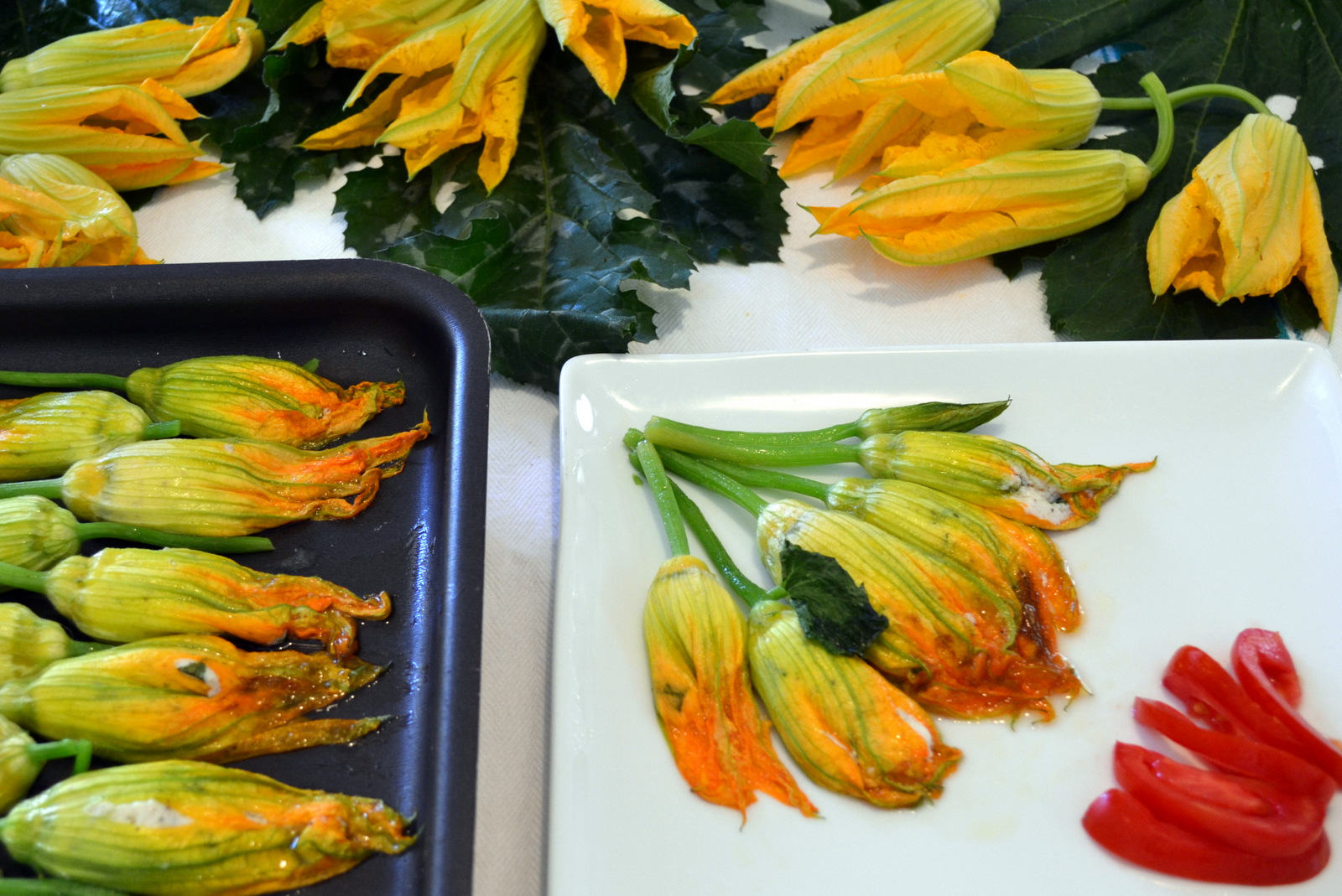 Antonietta 14/08/2013Ancora una ricettina facile e veloce, con i fiori di zucca come protagonisti; questa volta sono ripieni di ricotta ed erbette, pronti da mangiare in 10 minuti. In questo periodo sono abbondanti e ben si prestano ad essere preparati in molti modi.
