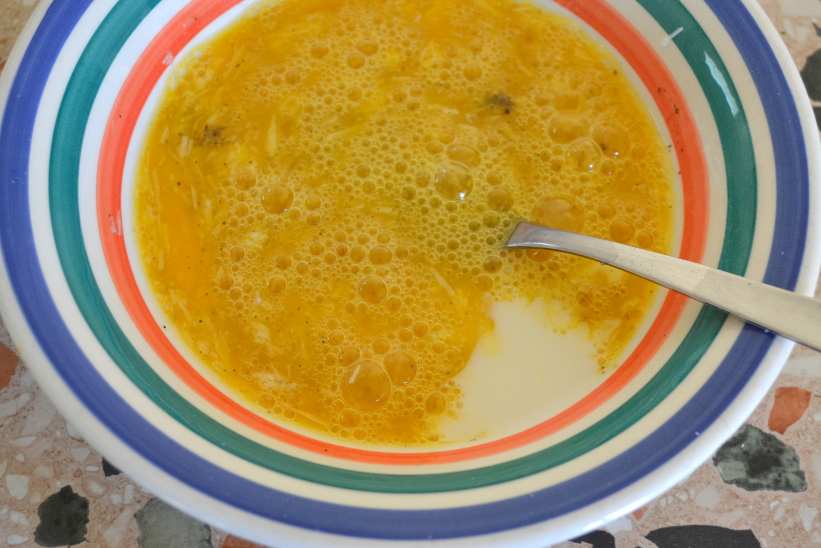 Tagliate le zucchine in fette di 0,5 cm di spessore, cospargetele di sale fino e mettetele in un piatto a sudare, per almeno 1 ora; intanto sbattete le uova con il pepe, il formaggio grattugiato, un pizzico di sale e 2 cucchiai di latte.