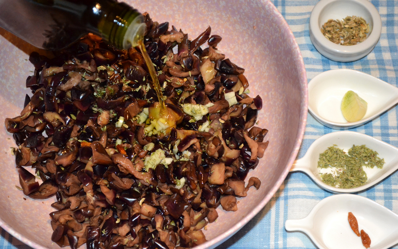 Separateli bene e conditeli con le spezie scelte, togliendone o aggiungendone altre a vostro piacere. Aggiungete un po di olio d’oliva e mescolate in modo che tutti i tocchetti ne sia impregnati.
