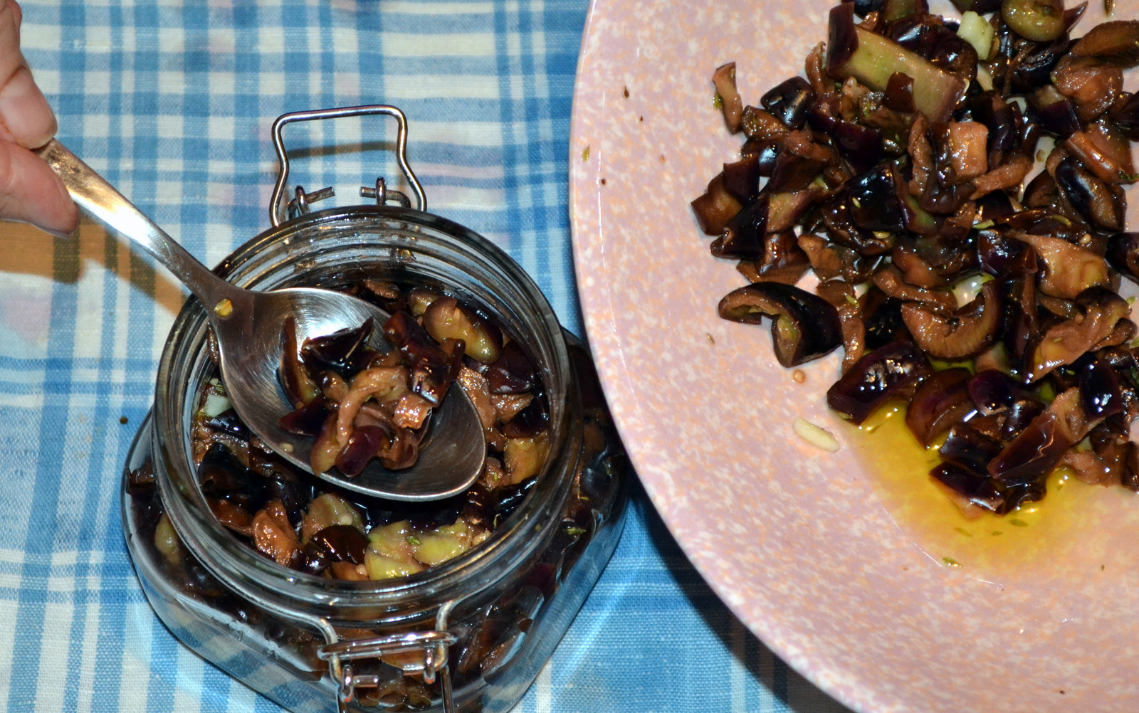 Antonietta 29/09/2013Per questa preparazione sono necessarie melanzane biologiche o comunque di provenienza sicura, infatti le bucce sono una componente utile alla preparazione e quindi non devono essere scartate. Le melanzane così preparate, strepitose per un panino dal sapore rustico, vanno d’accordo con un antipasto paesano che includa anche qualche formaggio saporito o accompagnate da qualche salume speziato come il capicollo o la soppressata.
