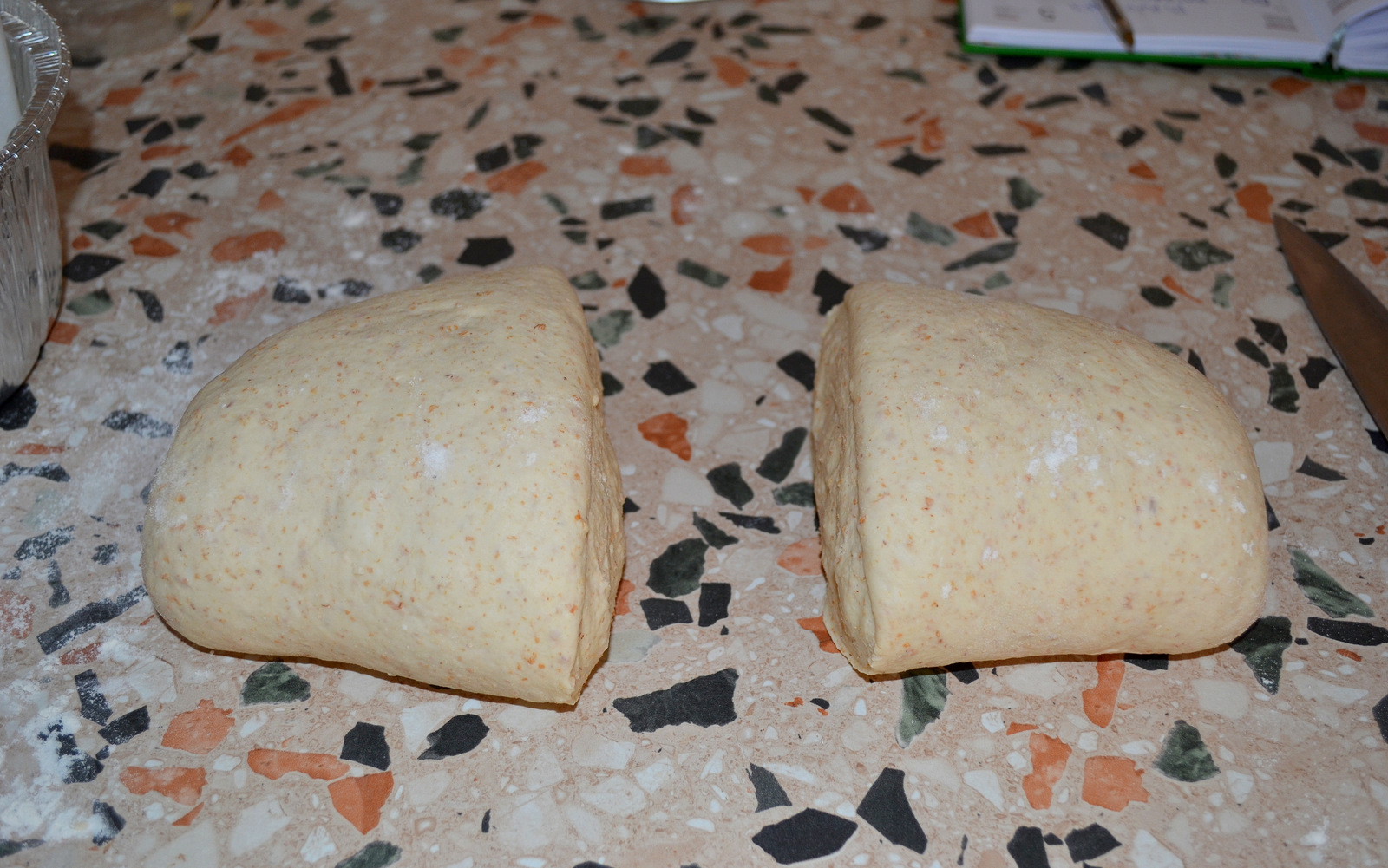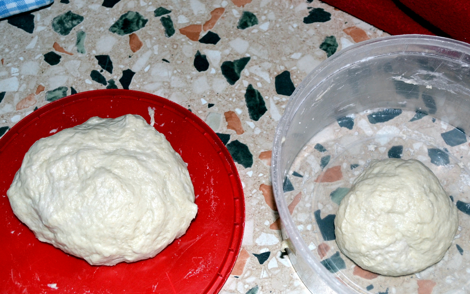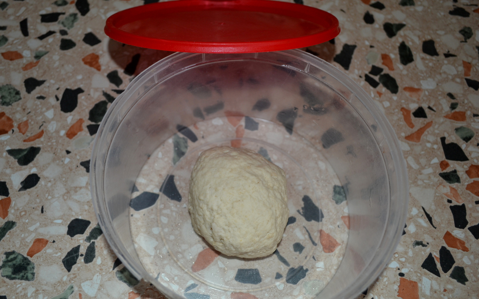 Lavorate fino ad ottenere un panetto liscio e omogeneo e mettete a lievitare in una scodella capiente con chiusura ermetica, in modo che non faccia crosta; quando avrà raddoppiato il suo volume (2 – 3 ore), avrete un panetto di lievito madre del peso di 400 grammi circa. Adesso dovete decidere come procedere nei successivi passaggi; consiglio di dividere il panetto in due parti, così da avere il lievito per impastare la pizza e un pezzetto da asciugare e conservare, per la successiva panificazione.