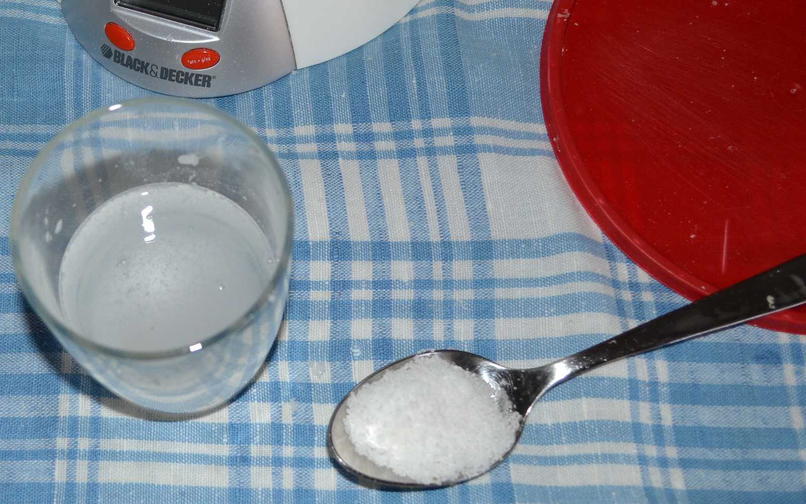 pesate il lievito asciutto che volete manipolare (per esempio 100 grammi), aggiungete acqua a temperatura ambiente che pesi la metà ( 50 grammi circa);