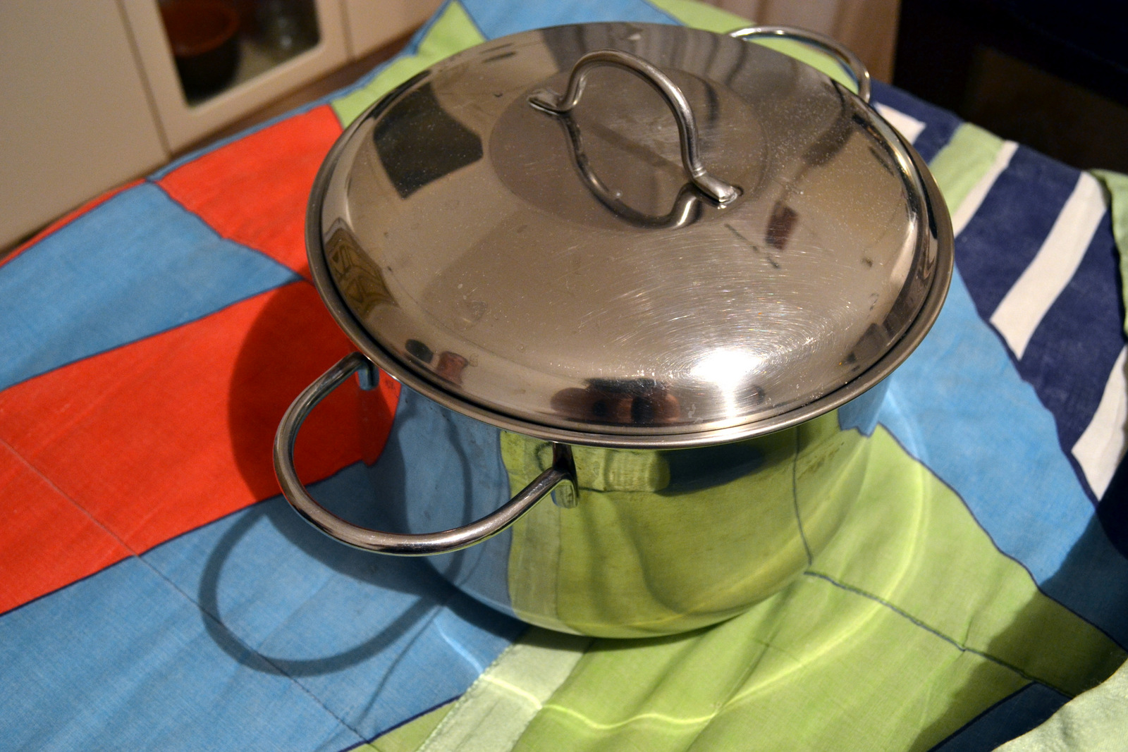 Close the pot with its lid and wrap it gently with warm plaid, as shown in the photos.