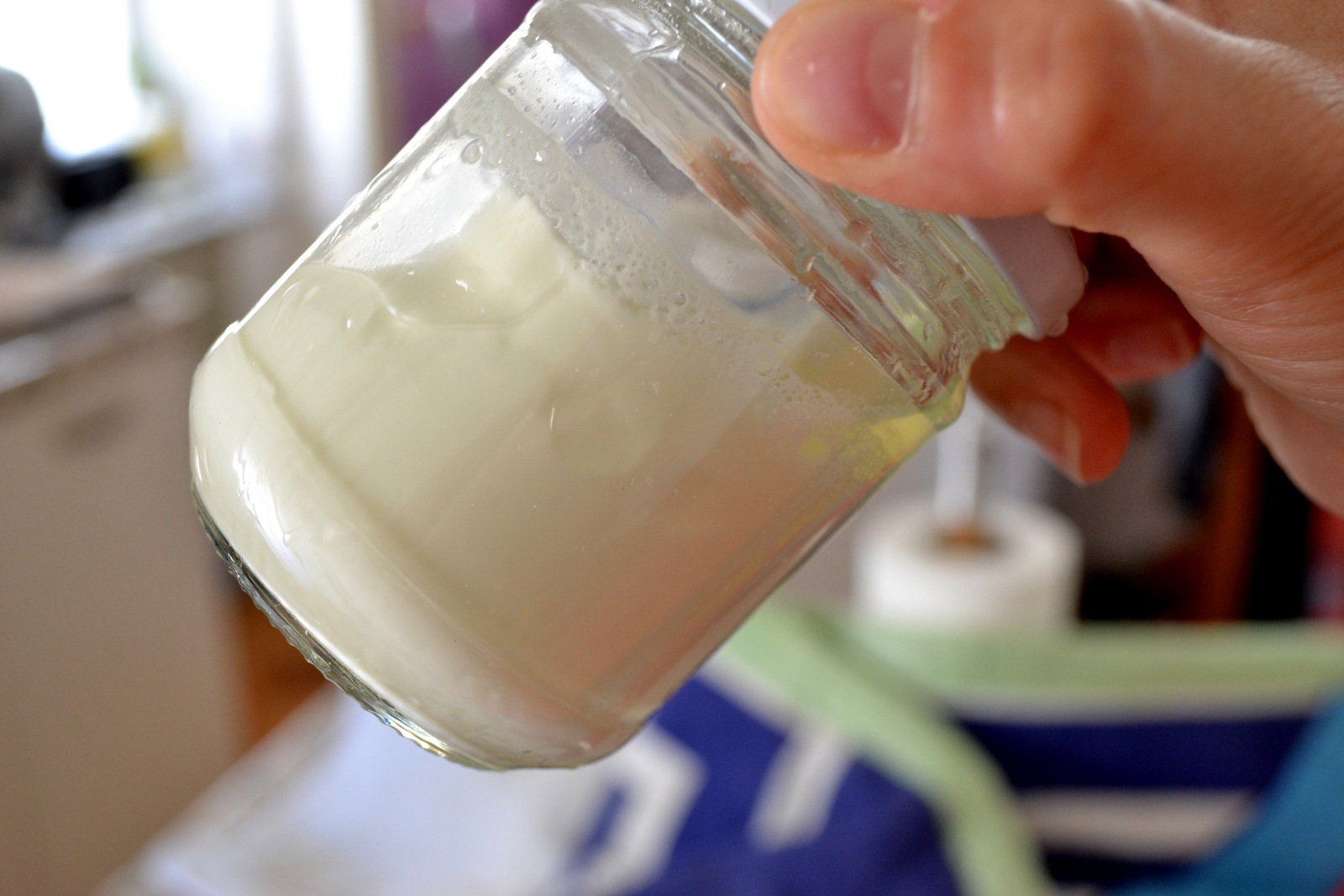 Let cool at about 40°C; if you haven’t a cooking thermometer, place your hands around the pot, if you can keep them, without getting burnt, the temperature is about right point. Don’t pour the milk from a pot to another, to accelerate cooling, inattention could be cause of contamination. However, you can let it cool by placing a pot over a bowl of frozen water.