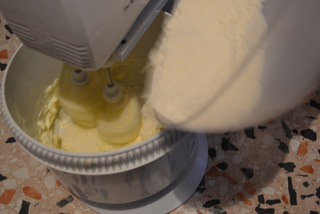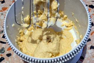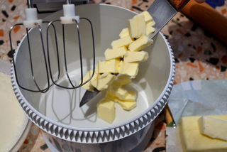 Intanto, mettete nell’impastatrice il burro, tagliato a pezzetti e fate girare le fruste al minimo;