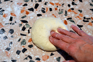 rovesciate sul piano di lavoro, spolverato leggermente di farina e lavorate il panetto per qualche minuto;