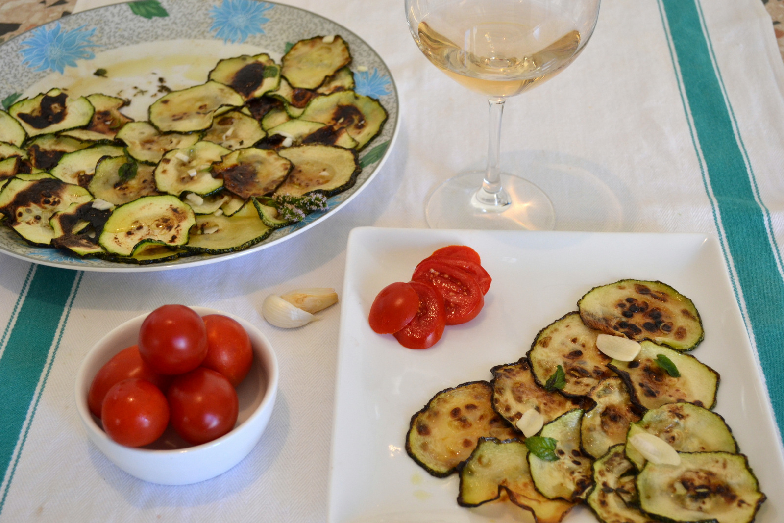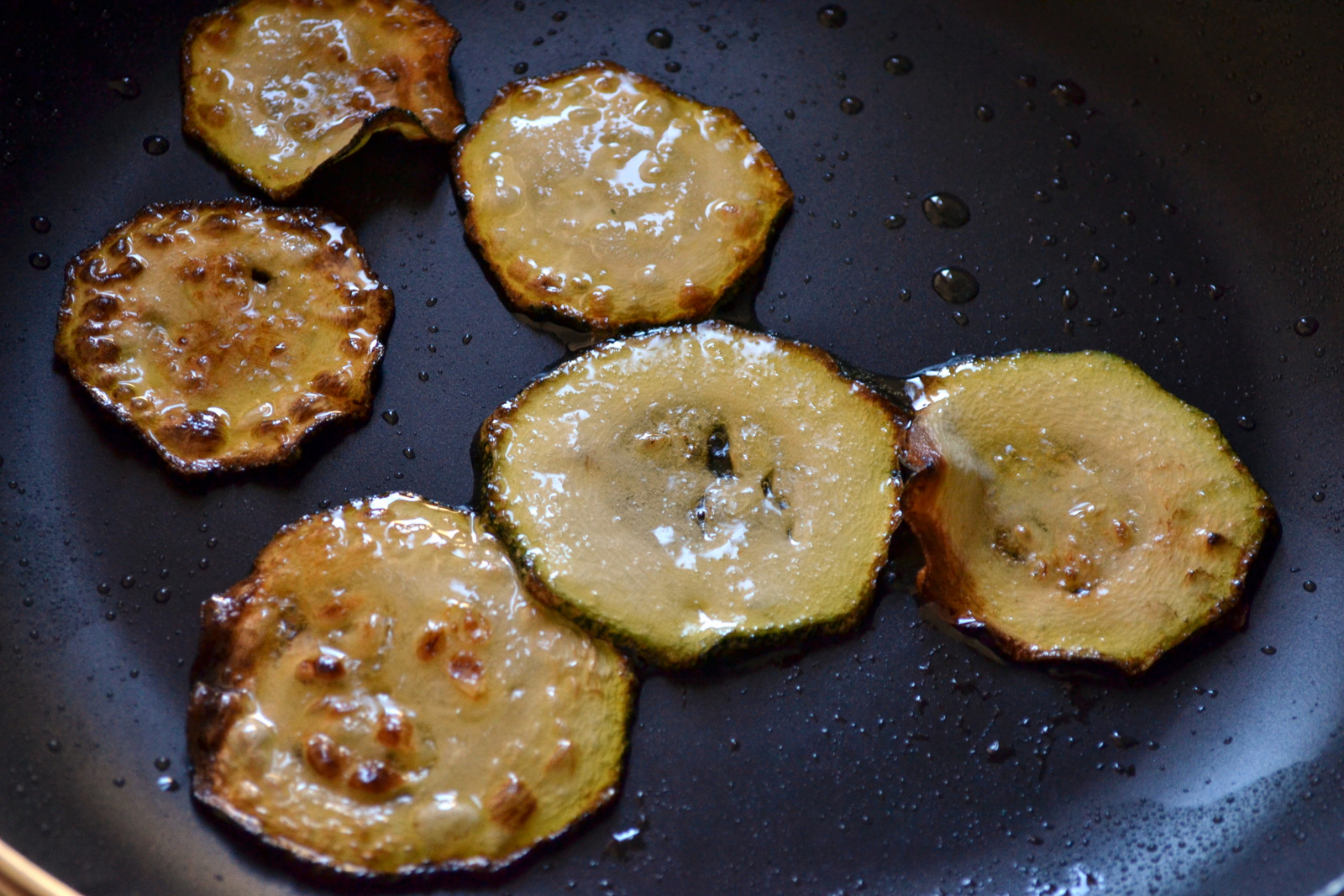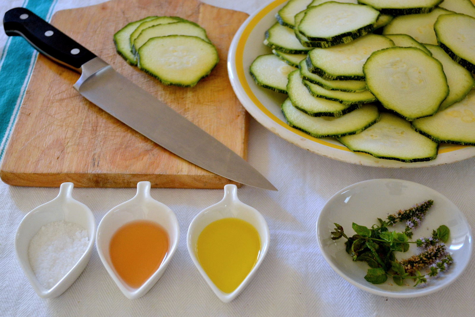 Tagliate le zucchette a fette rotonde e sottili, mettetele in una scodella con il coperchio e lasciatele nel frigo per 24 ore in modo che si asciughino. Trascorso il tempo, cuocetele da tutte e due le parti, nella padella unta di olio d’oliva, finché siano quasi diventate croccanti.