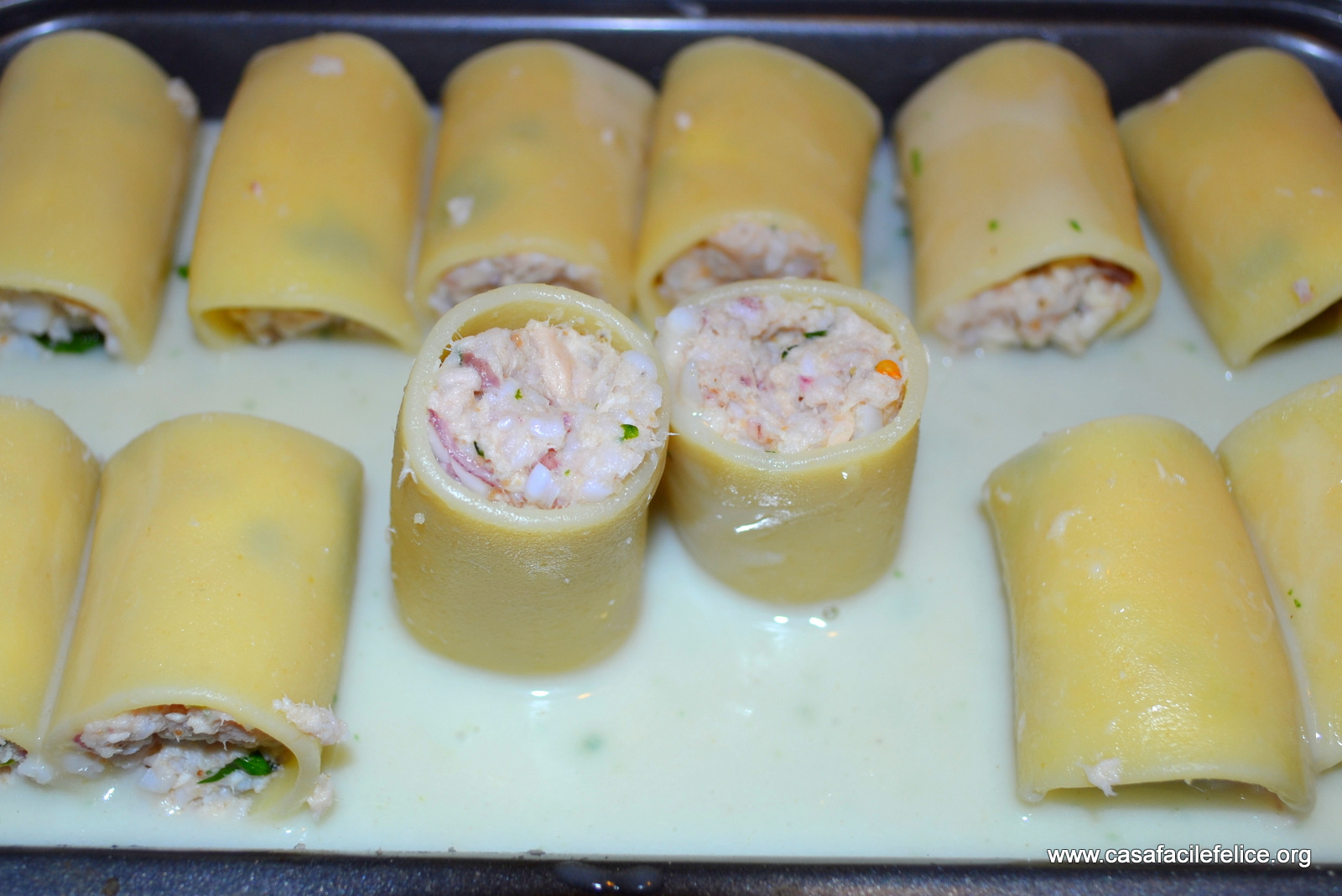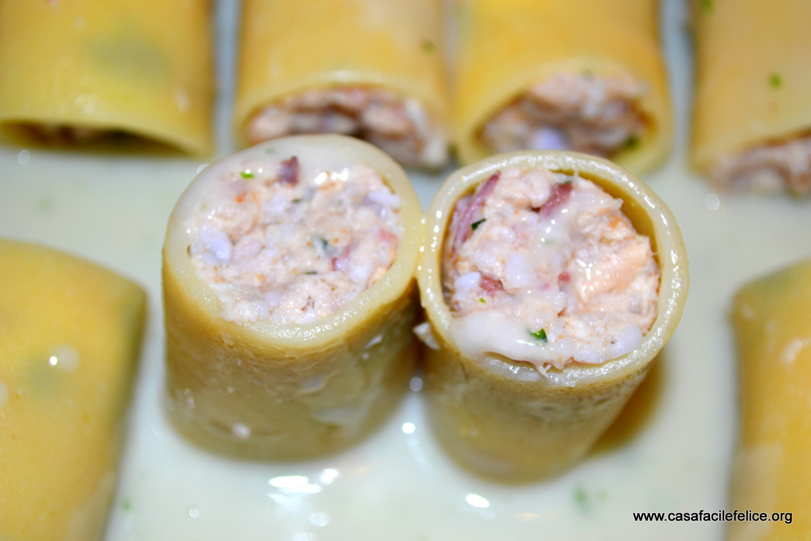 Amalgamate bene il ripieno e riempite i paccheri con questa farcia;
