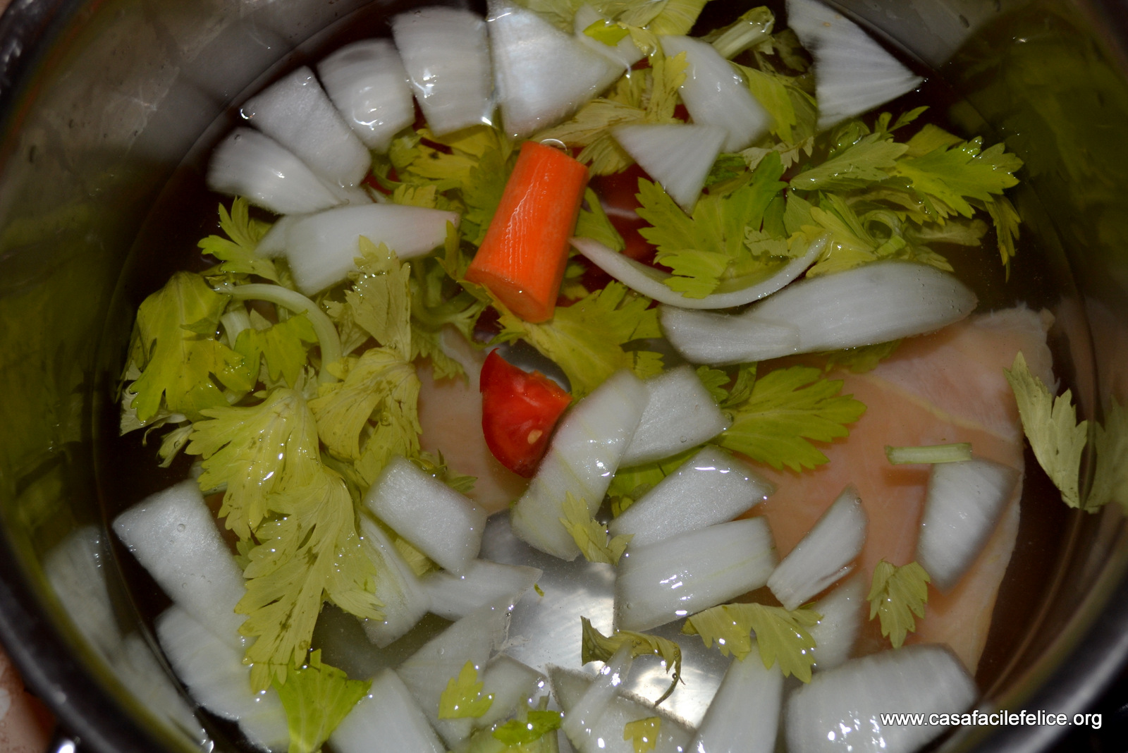 Per avere un ottimo brodo, è importante che la carne sia aggiunta subito all’acqua e che cuocia a fuoco lento. Diversamente, per avere un buona carne lessa, è indispensabile che sia aggiunta quando l’acqua bolle, in modo che gli umori restino intrappolati e la carne conservi morbidezza e sapore. Altre ricette con il pollo, sono disponibili qui.