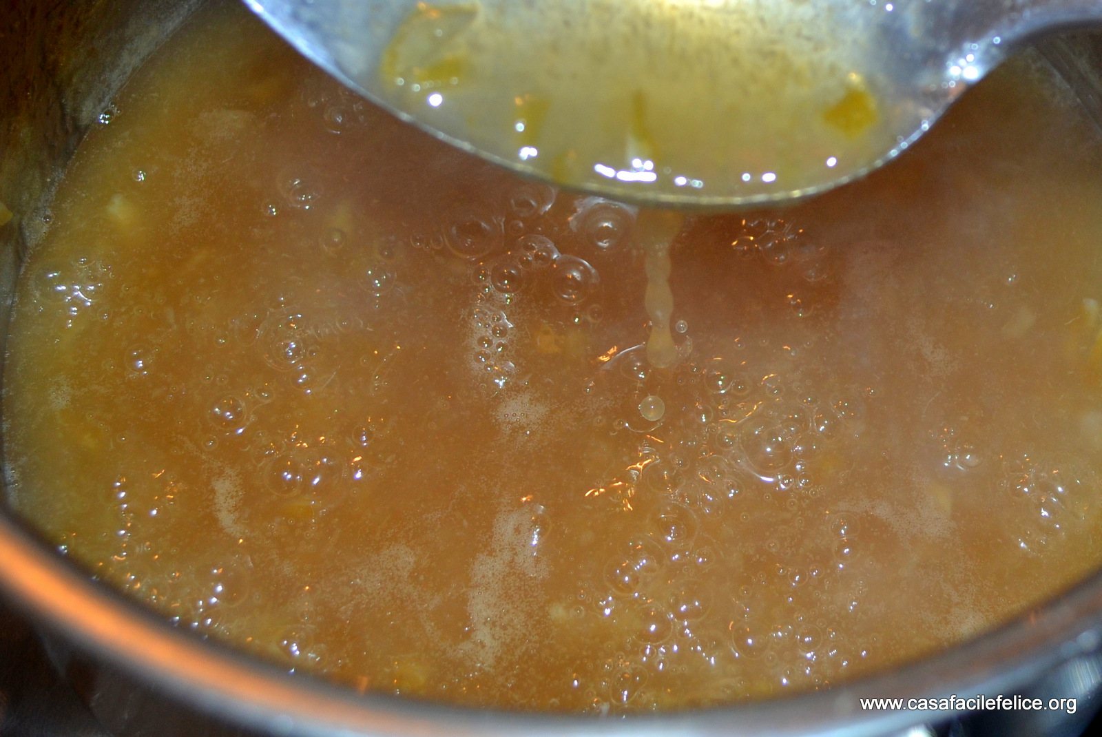 Mettete sul fuoco e cuocete dolcemente, mescolando e schiumando accuratamente.