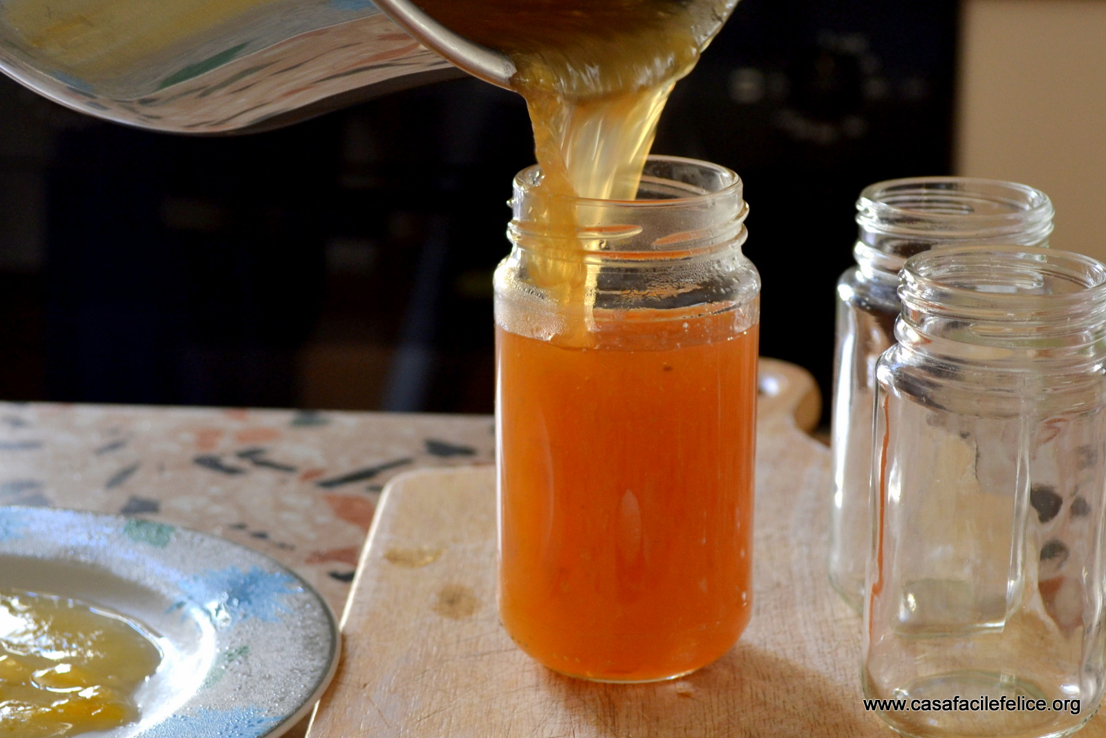 Trascorsi circa 30 minuti, provate la densità della marmellata; mettetene una cucchiaiata sul piattino freddo, lasciatelo in congelatore per dieci secondi poi con il dito, dividete la massa: se non si ricongiunge e fa le grinze, la marmellata è pronta. In questo articolo, trovate molti modi per fare la prova densità, se non avete il termometro. Invasate quando è ancora calda, chiudete i vasetti e girateli sottosopra; lasciateli per qualche minuto, rivoltate e quando si saranno raffreddati, riponeteli in dispensa.