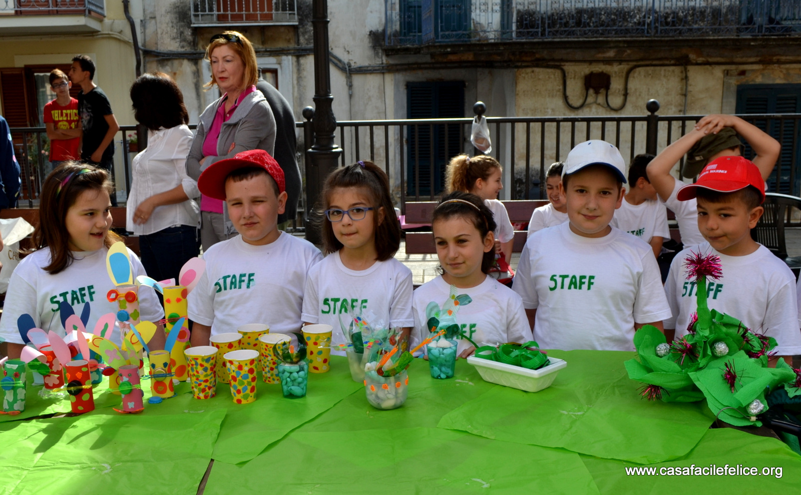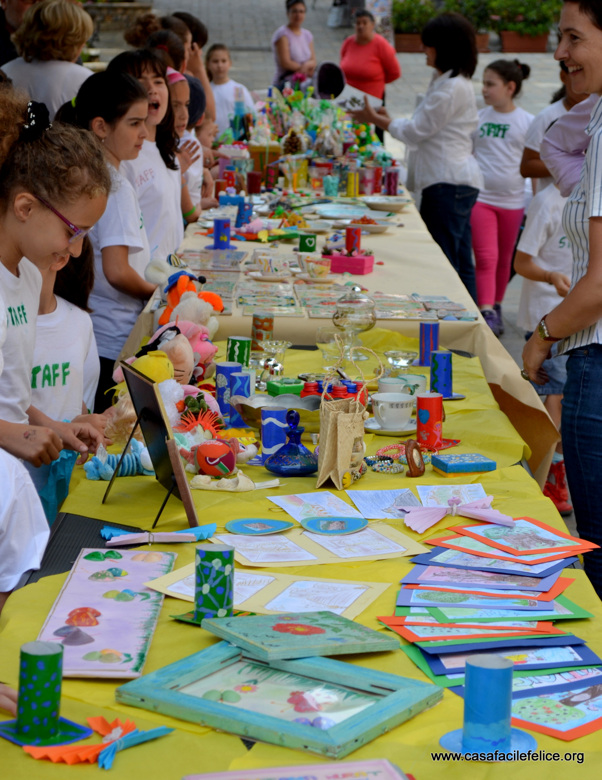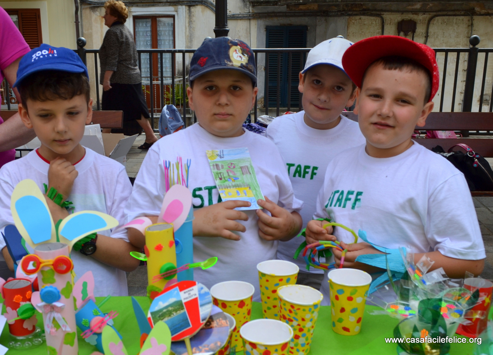 Oltre a ricerche storiche, erano in bella mostra alberi di Natale fatti con tappi di bottiglie di plastica, bicchieri trasparenti colorati a mano e barattoli di latta, grandi e piccoli, finemente decorati; contenitori allegramente colorati, di cartoncino o di plastica, di varie misure, per penne e matite; braccialetti e piccoli fiori di porcellana, conchiglie e borsettine di paglia; piastrelle decorate, da appendere alle pareti o da usare come sottopentola; piatti colorati e variamente decorati, da utilizzare come centrotavola o in tanti modi diversi.festa del riciclo