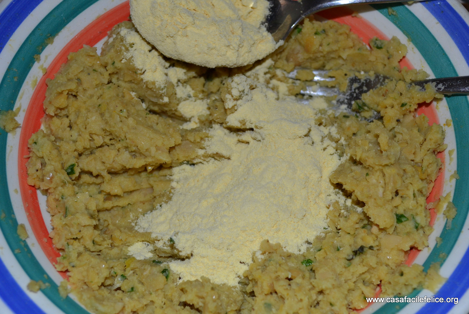 aggiungete anche il cumino, aggiustate di sale e se necessario, asciugate con un cucchiaio di farina di ceci o pane grattugiato.
