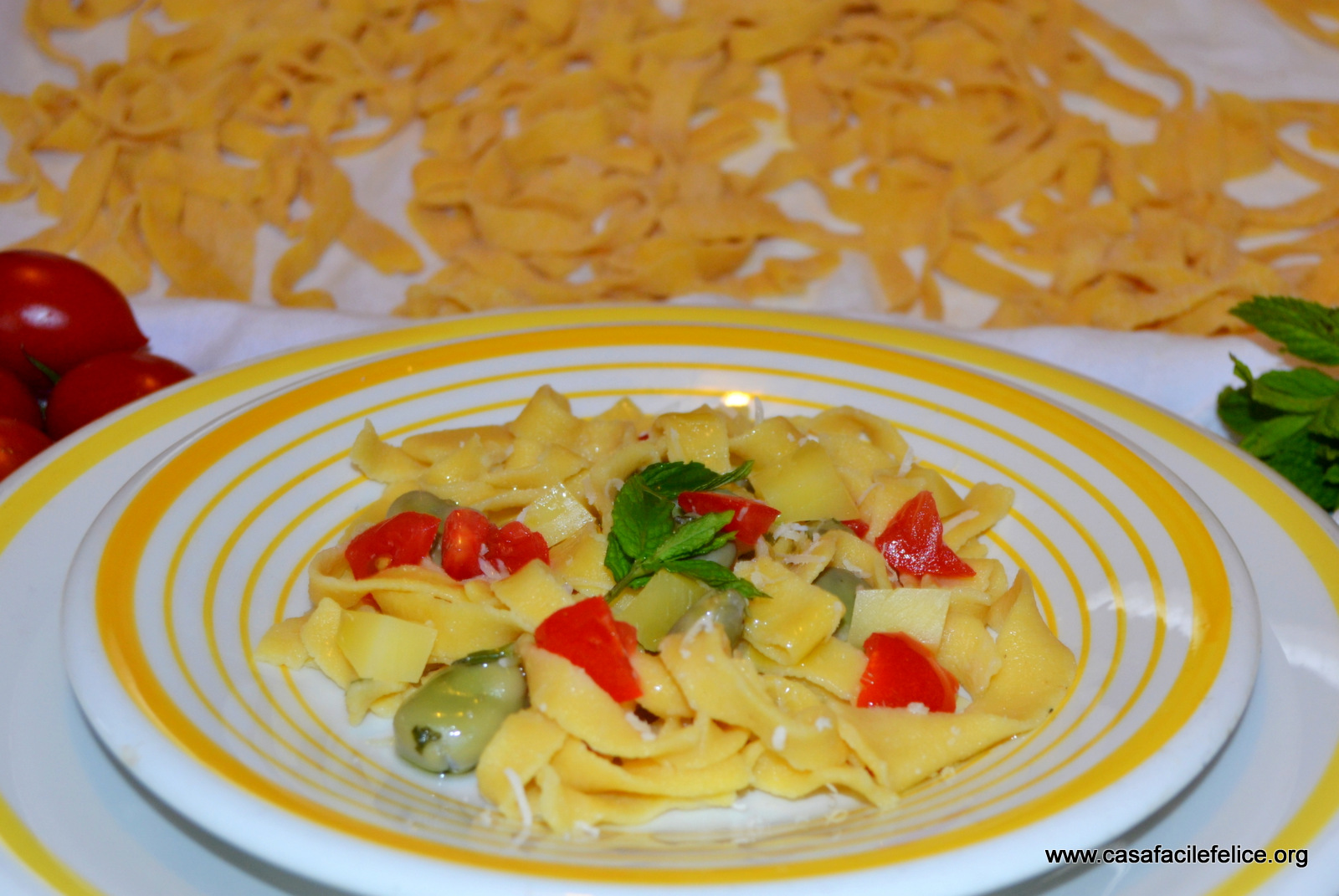 Antonietta 12/06/2014La ricetta prevede le tagliatelle fatte a mano, con farina di ceci, ma potete usare anche altri tipi di pasta che vi soddisfano. Il condimento non è molto ricco, ma è di stagione; la menta e le fave utilizzate nella ricetta, sono freschissime, appena raccolte nel campo. Una volta sgusciati, i semi si possono cucinare e mangiare con il loro involucro, tenero e saporito.