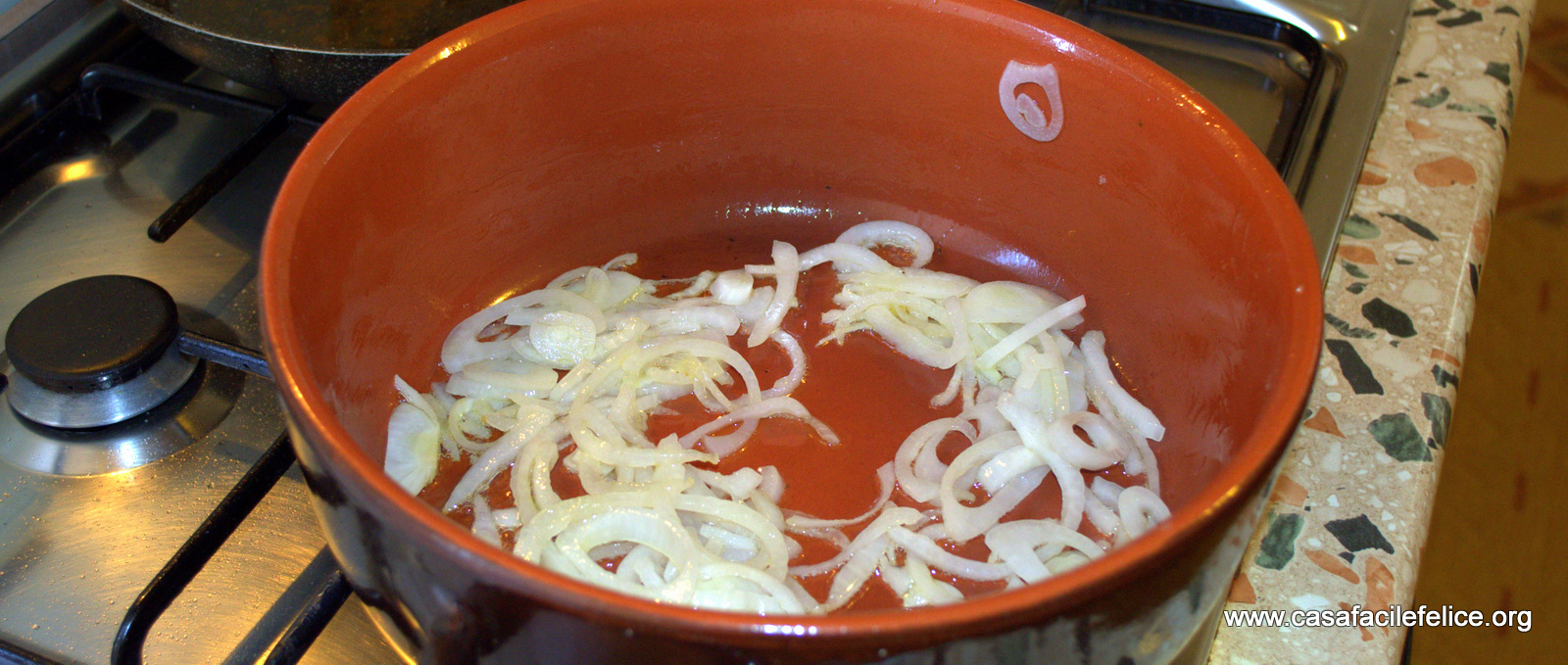 Tagliate a fettine sottili la cipolla e l’aglio e fate appassire in olio extravergine;