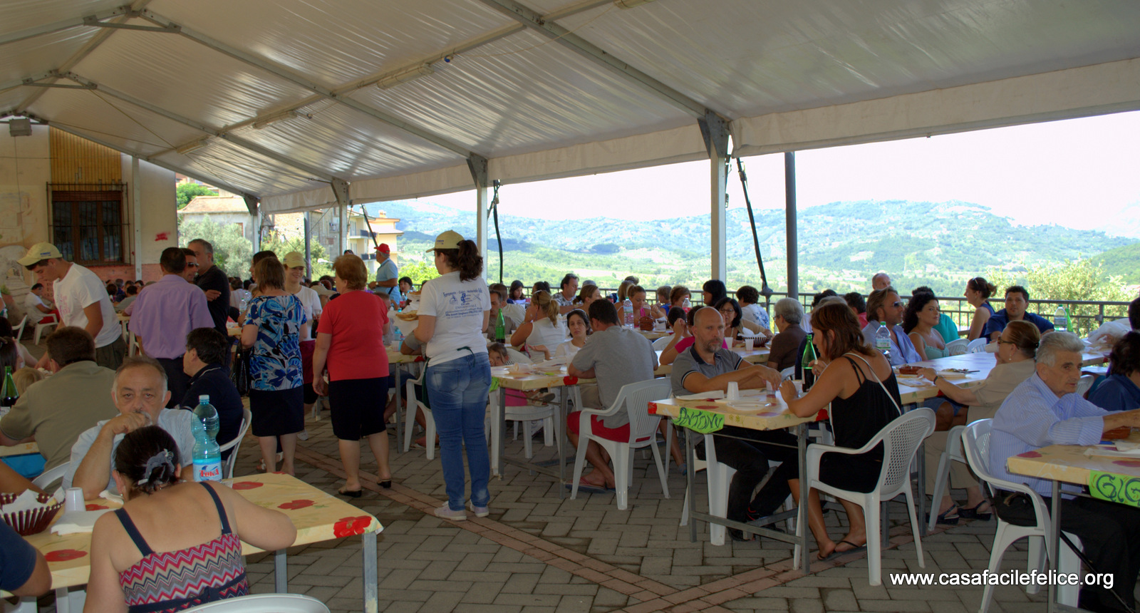 Negli spazi che con gli anni sono stati preparati per l’evento, viene montato il capannone con vista sulle colline, che permette di godersi il cibo con ogni tempo. I piatti vengono serviti da giovani del luogo, gentili ed efficienti, sempre pronti ad accontentare i visitatori.