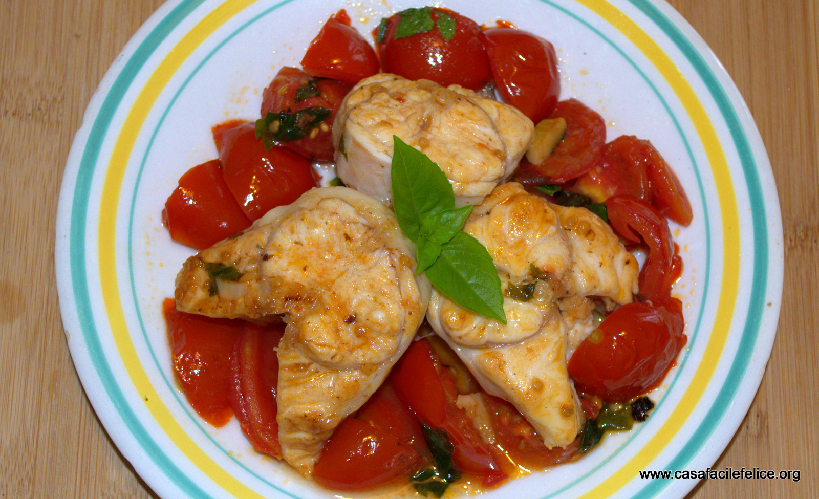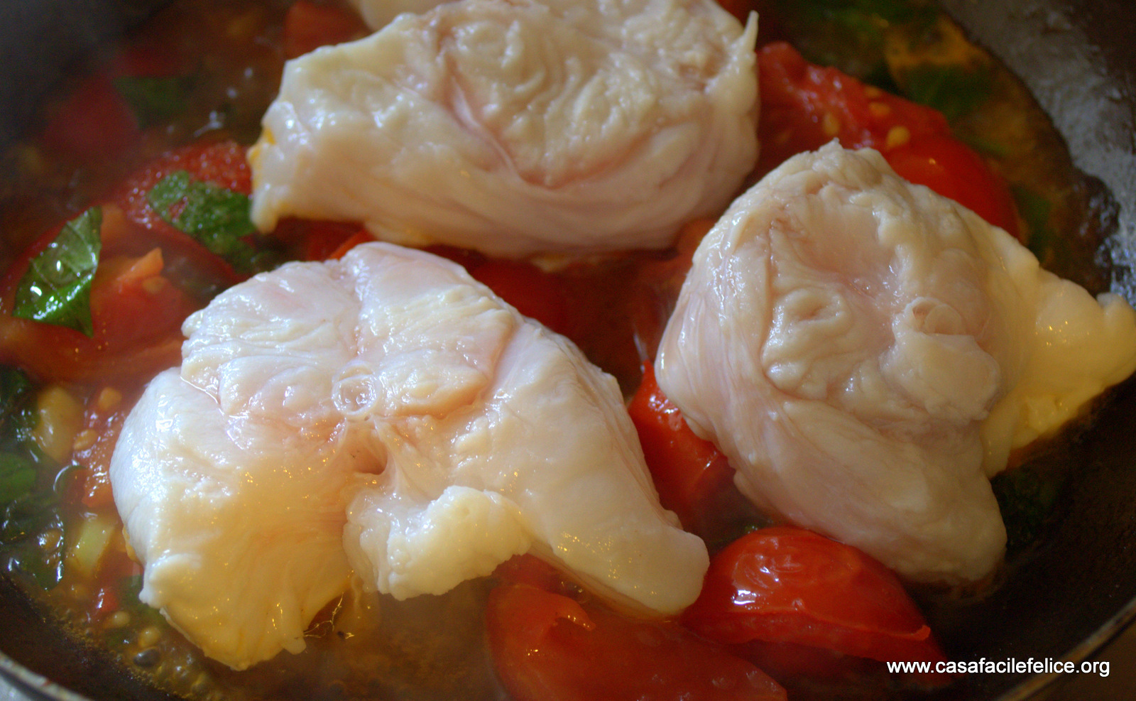 Mettete in una padella capiente gli altri ingredienti e fate cuocere un paio di minuti. Aggiungete i tranci di pesce e fate cuocere per 7 – 10 minuti (dipende dallo spessore dei tranci). Servite caldo o freddo.