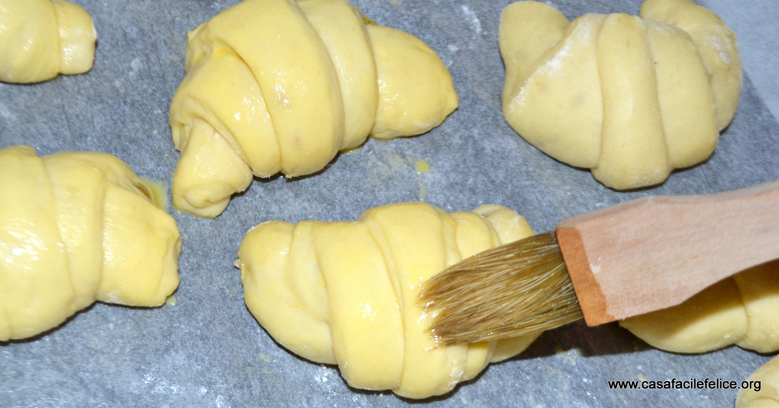 Mettete sulla teglia e lasciate lievitare per 1 ora circa, dipende dalla grandezza.cornetti impasto base