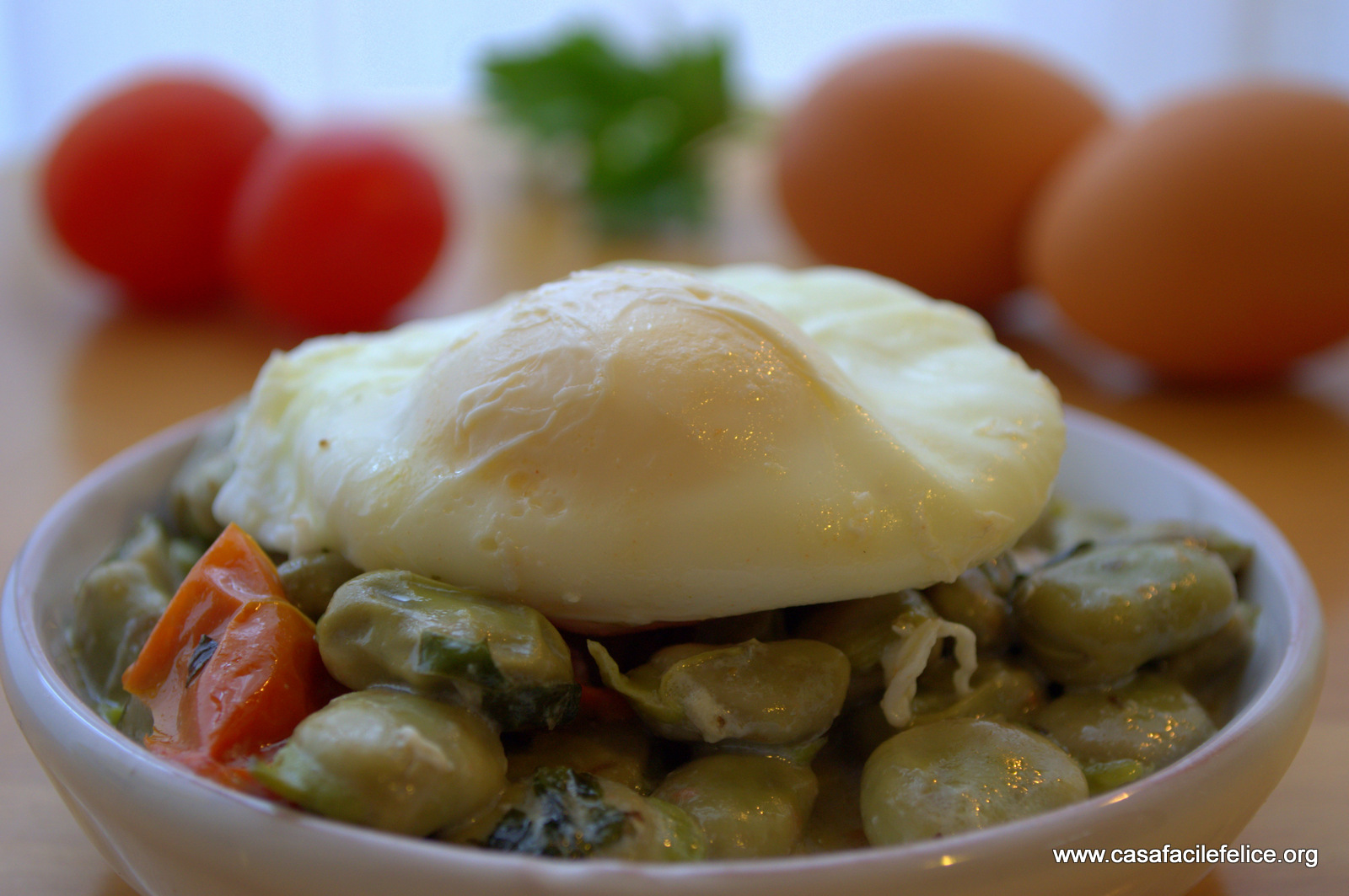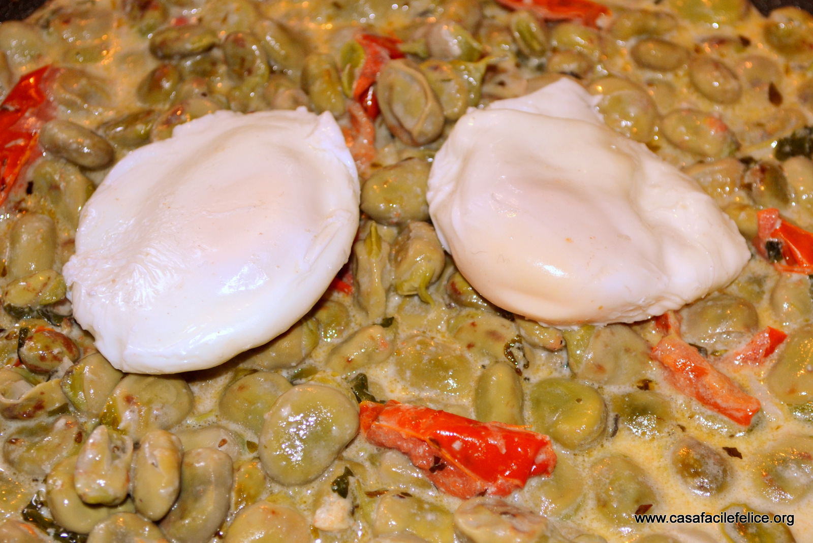 Servite con uova in camicia. Le fave così preparate, possono essere utilizzate anche per condire il riso e la pasta.