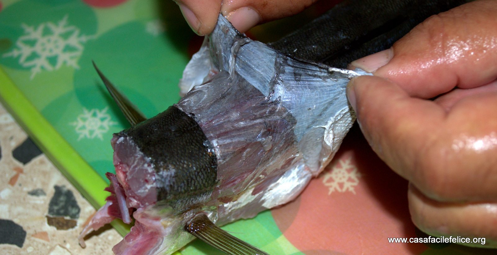 Se trovate difficoltà, invece di tirare la pelle, spellatelo con un coltello affilato.