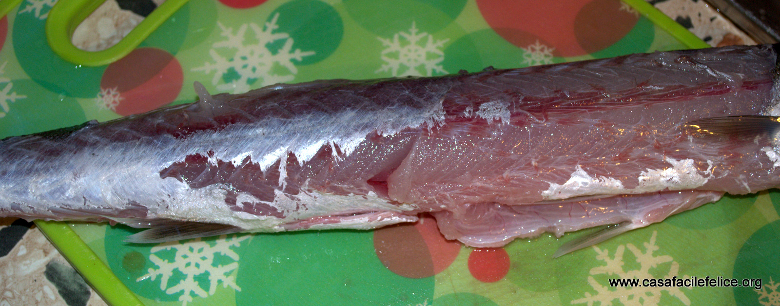 Togliete la pelle al Barracuda, incidendo sotto le branchie e tirando con decisione verso la coda. Se necessario, incidete con un coltello intorno alle pinne, per agevolare l’operazione.