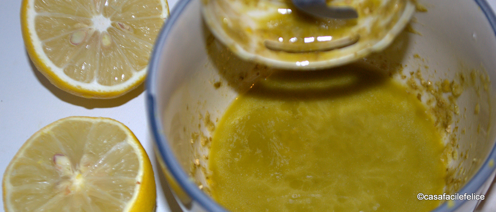 Intanto frullate gli aromi con il succo di limone, il vino e il formaggio grattugiato;pesto