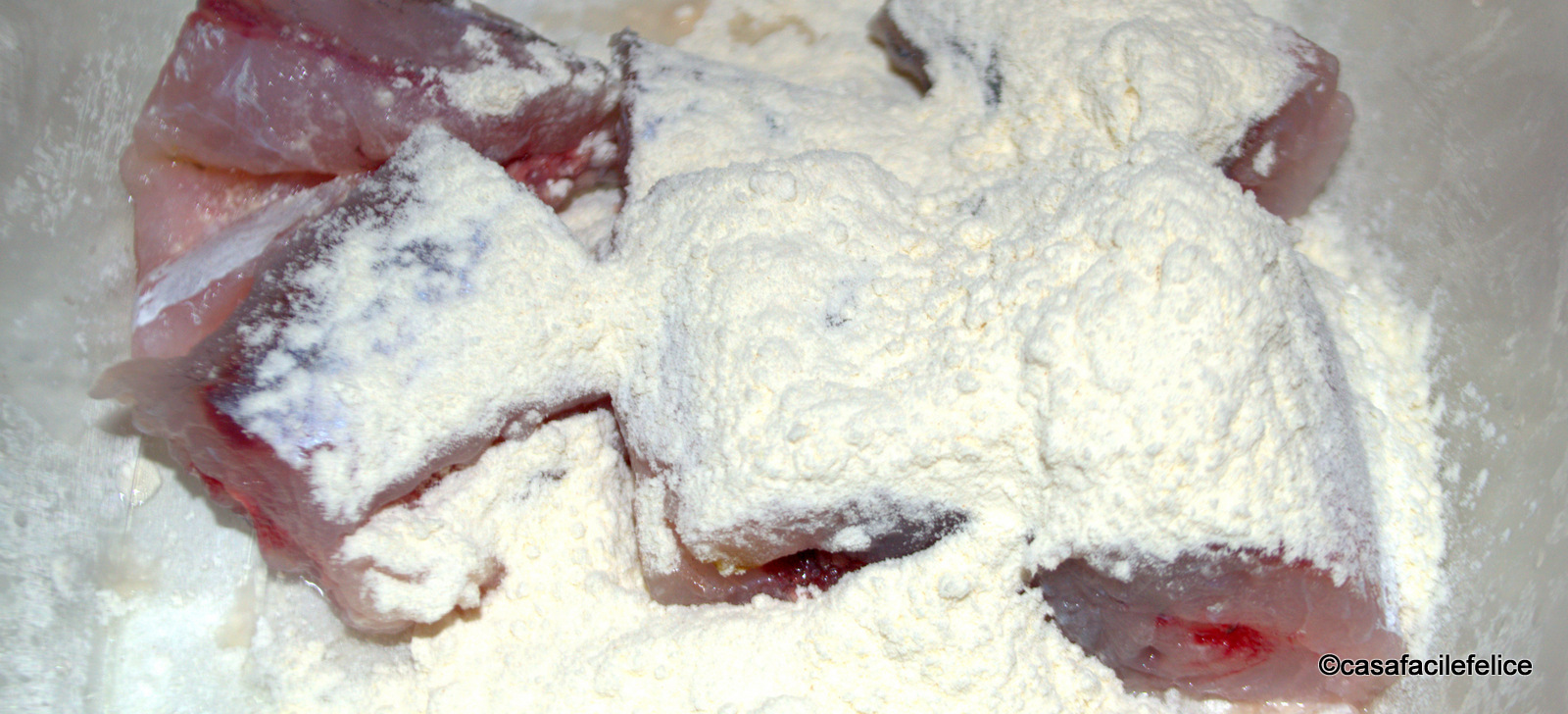 Tagliatelo in tranci e passatelo nella farina;barracuda, tranci,tranci barracuda