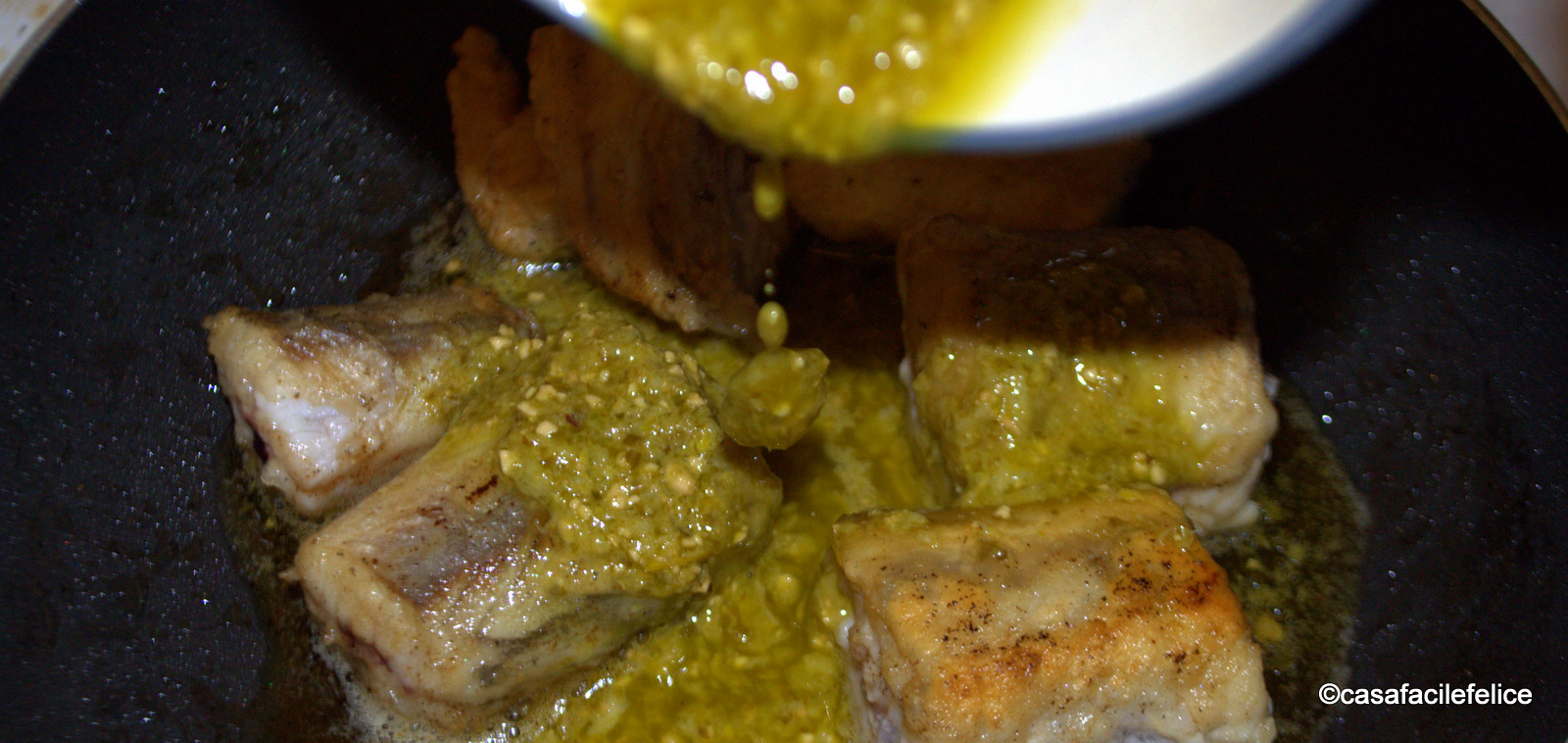 aggiungete la crema ai tranci e fate insaporire per 2 – 3 minuti;barracuda al pesto