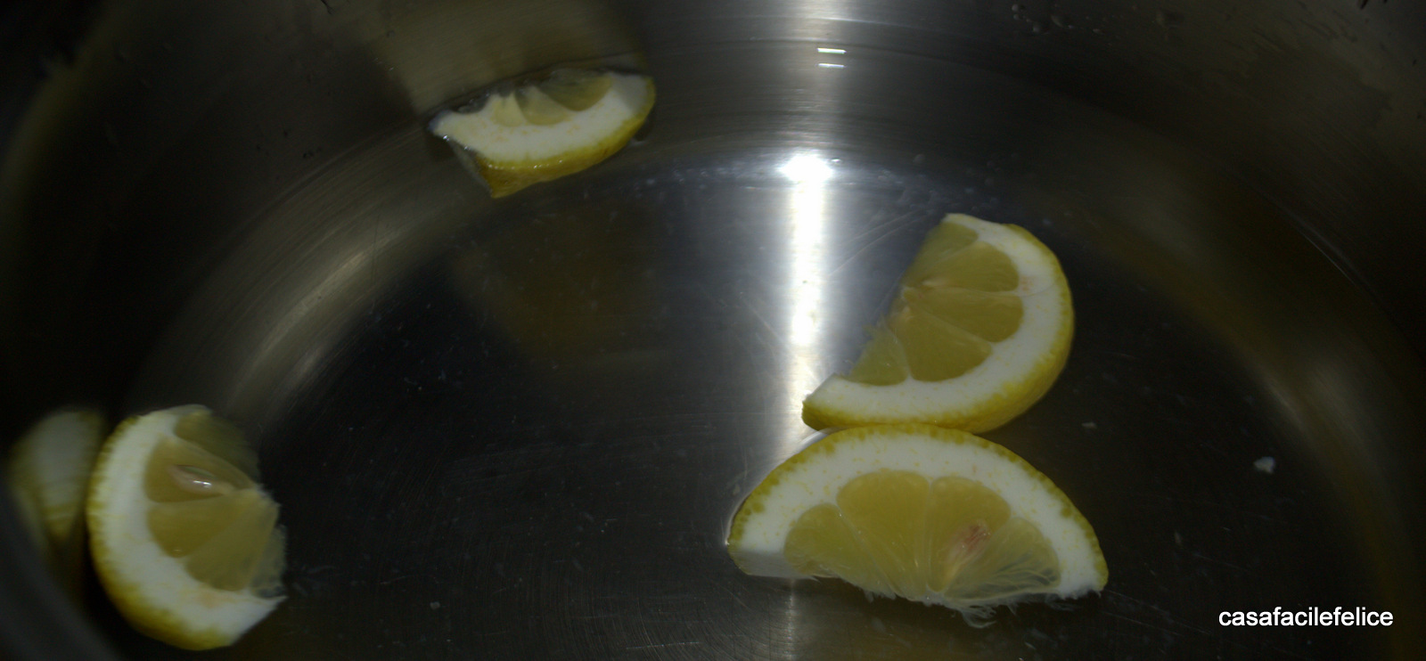 Sciacquate brevemente le Cicale di mare sotto l’acqua corrente e procedete alla rimozione del carapace superiore, come descritto in questo video. Mettete un po di acqua in una pentola e aggiungete delle fette di limone;