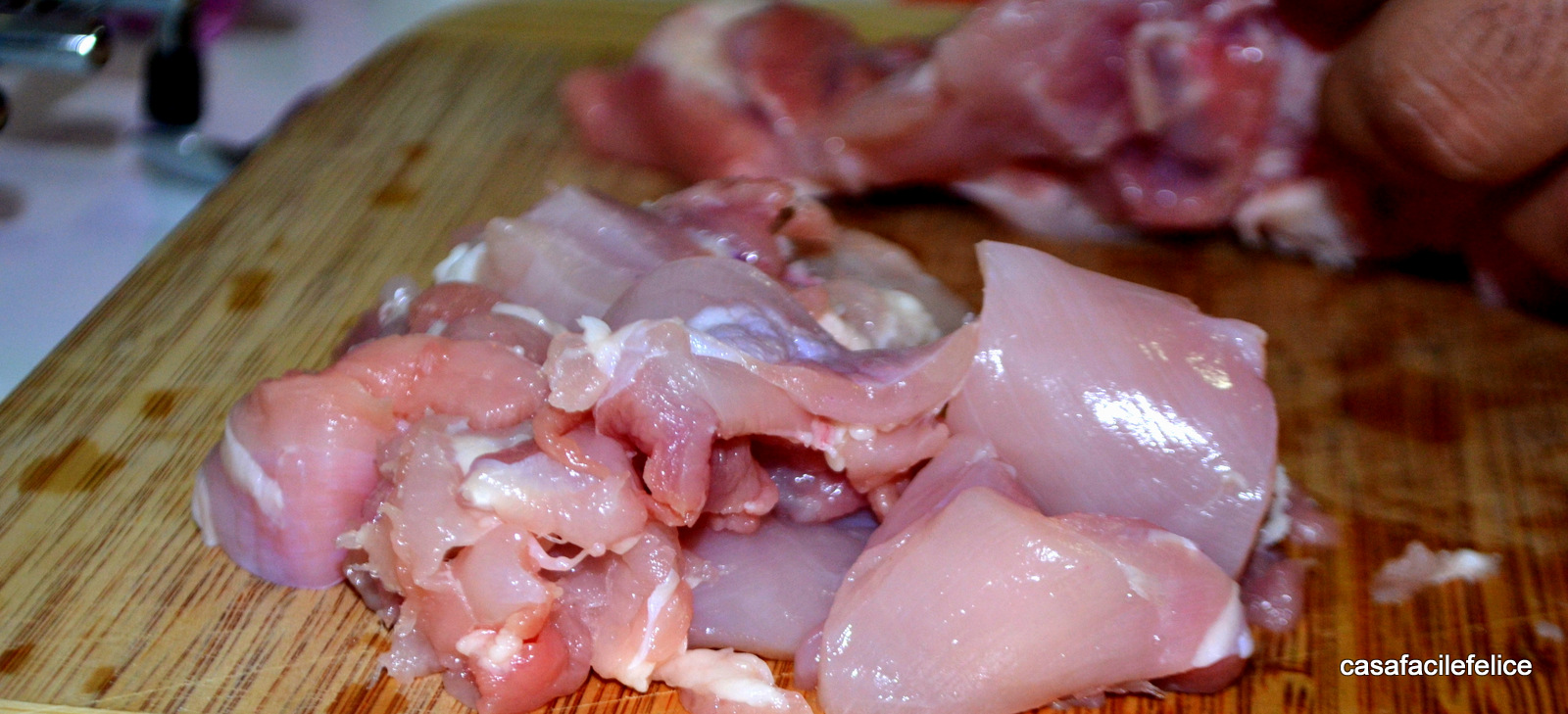 Intanto tagliate il pollo a tocchetti;
