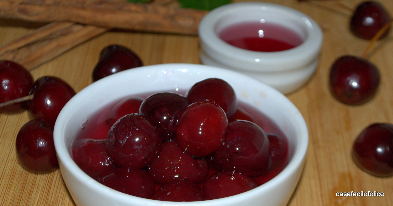 Antonietta 28/06/2015Ecco un modo facile e veloce di conservare le ciliegie, da gustare nei mesi freddi, quando si ha voglia di Primavera. La sterilizzazione può essere asciutta, in forno caldo a 160° per 30/40 minuti circa oppure in acqua bollente per 20 minuti circa, dipende dalla grandezza dei vasetti.