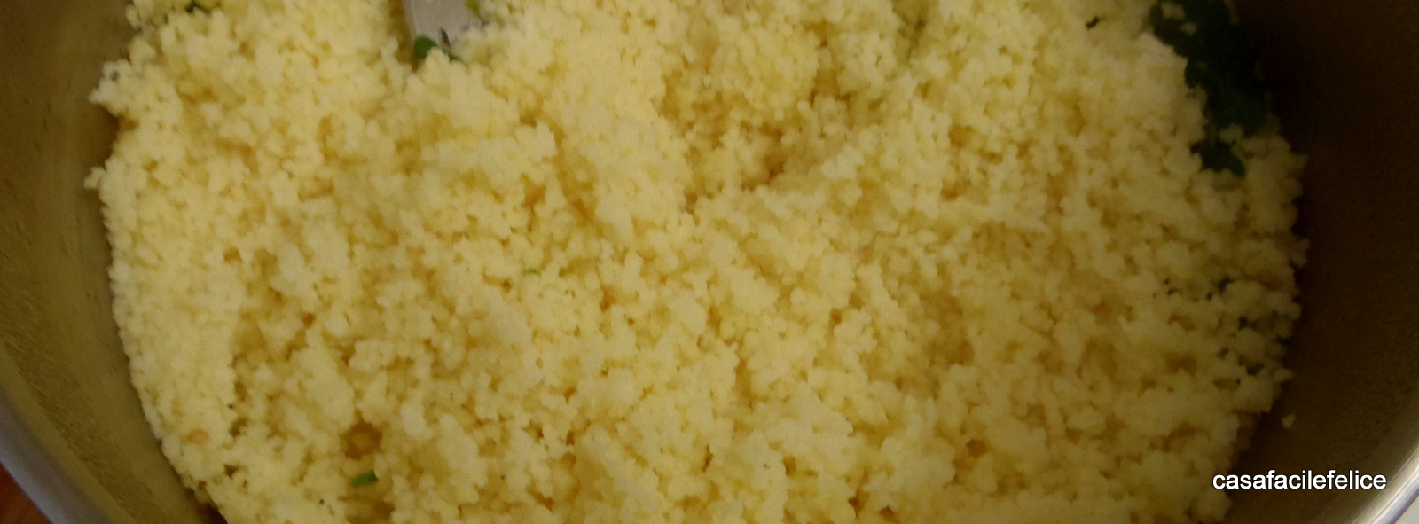 Versate il cus cus in una casseruolina e unite tutto il brodo di pesce bollente,