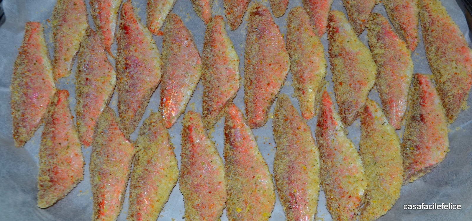 Aggiustate di sale e passate i filetti nel trito, facendo aderire bene. triglie panate