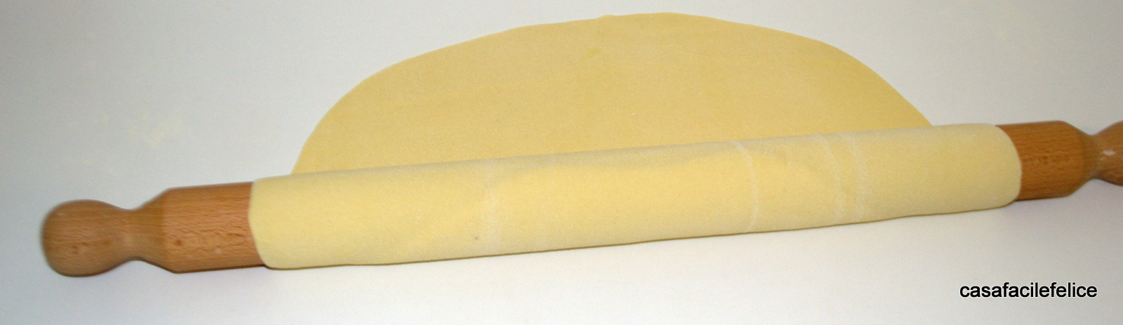 Trascorso il tempo, riprendete l’impasto e stendete con il matterello, fino ad ottenere una sfoglia sottile.