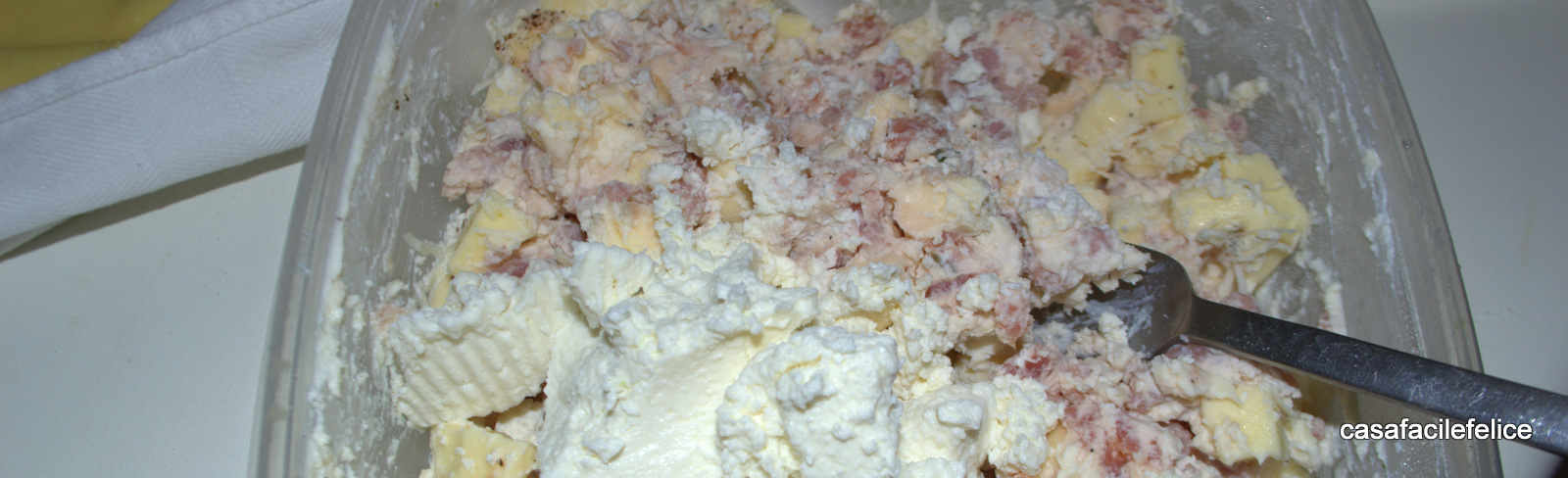 Preparate il ripieno; mescolate la ricotta e la salsiccia, senza budello e sgranata bene; aggiungete un pizzico di pepe, un cucchiaio di formaggio grattugiato, il formaggio filante tagliato a cubetti piccoli e, solo se necessario, aggiustate di sale. Amalgamate tutto con un uovo, in modo che il ripieno risulti legato bene ma asciutto; se necessario aggiungete ancora formaggio grattugiato.